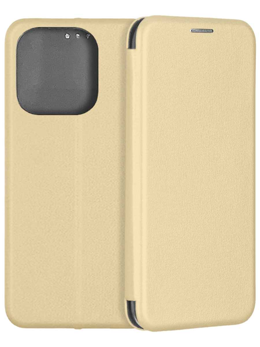 Чехол-книжка Fashion Case золотистого цвета для смартфона Huawei Honor 400 Lite с твердой магнитной 3D обложкой и силиконовой прозрачной вставкой внутри легко трансформируется в удобную подставку, имеет отделение для карт.