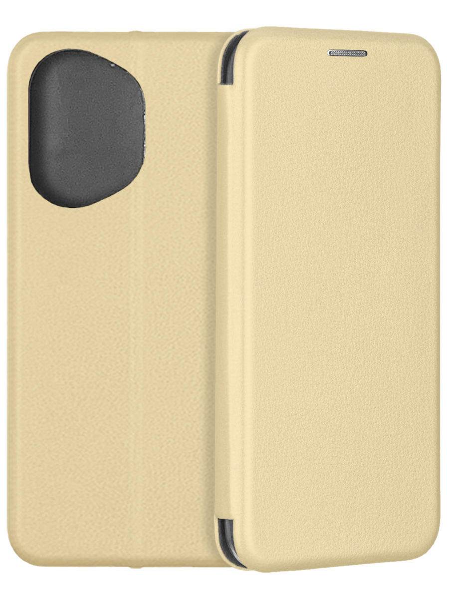 Чехол-книжка Fashion Case золотистого цвета для смартфона Huawei Honor 400 с твердой магнитной 3D обложкой и силиконовой прозрачной вставкой внутри легко трансформируется в удобную подставку, имеет отделение для карт.