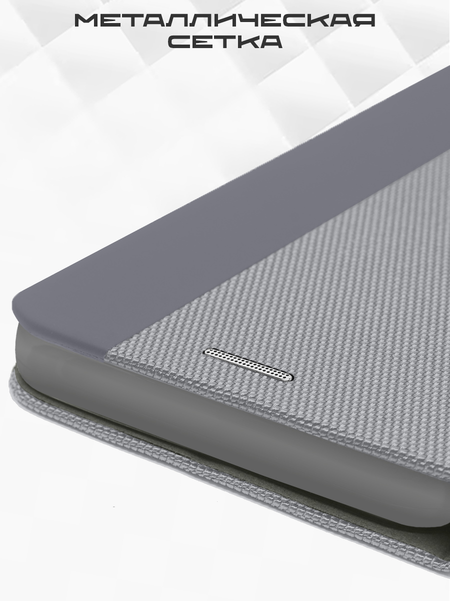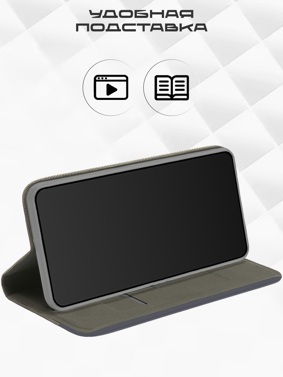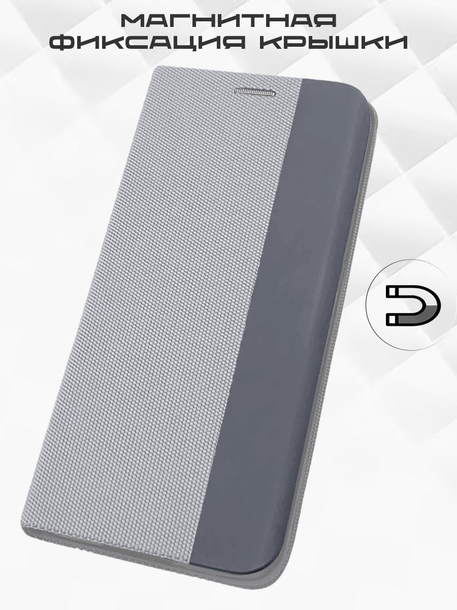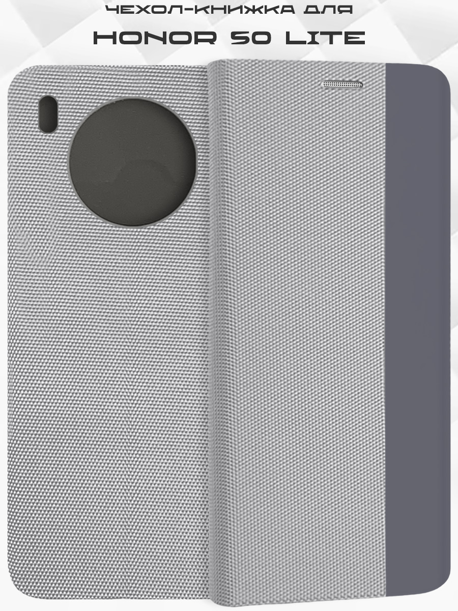 Чехол-книжка New Case серого цвета для смартфона Huawei Honor 50 Lite с твердой магнитной обложкой и силиконовой вставкой внутри легко трансформируется в удобную подставку, имеет отделение для карт.
