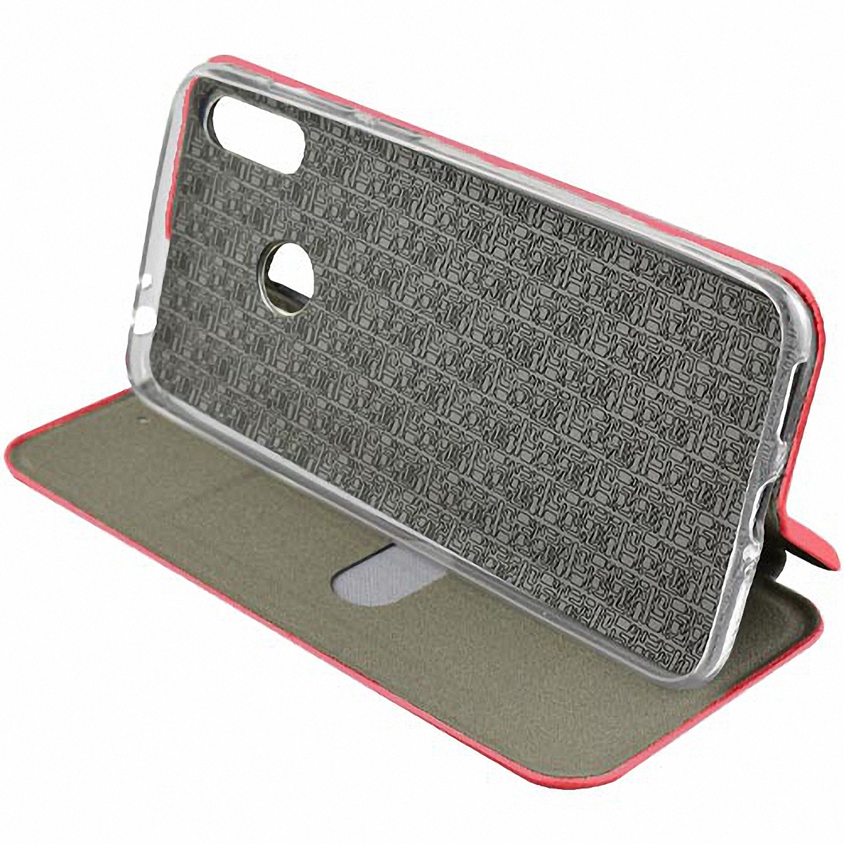Чехол-книжка Fashion Case красного цвета для смартфона Huawei Honor 8C с твердой магнитной 3D обложкой и силиконовой прозрачной вставкой внутри легко трансформируется в удобную подставку, имеет отделение для карт.