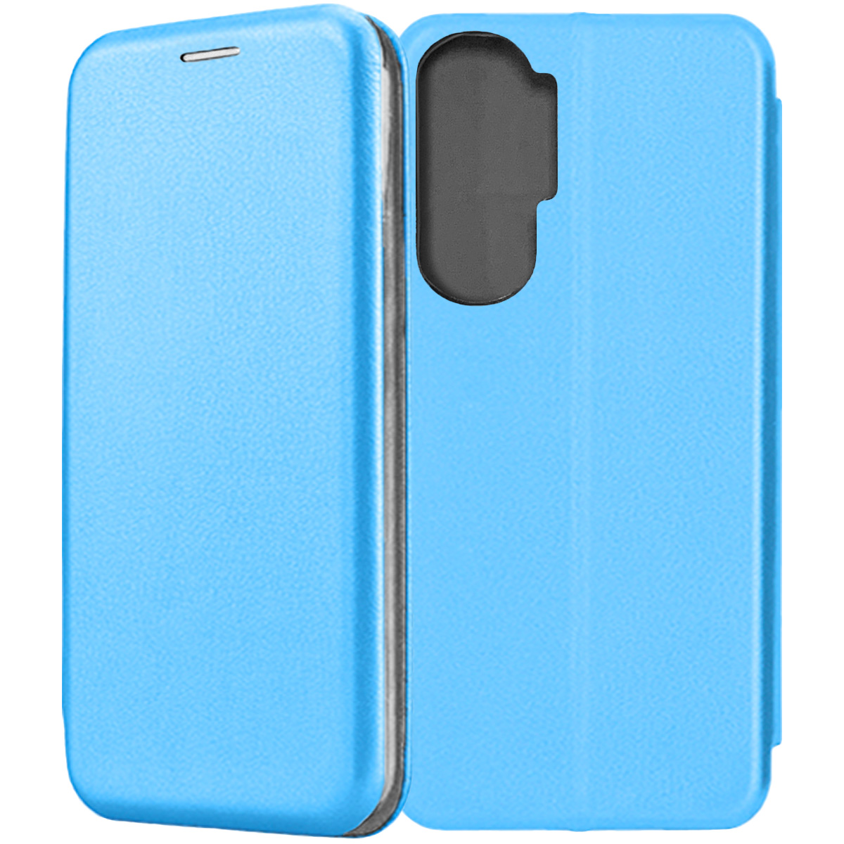 Чехол-книжка Fashion Case голубого цвета для смартфона Huawei Honor 90 Lite с твердой магнитной 3D обложкой и силиконовой прозрачной вставкой внутри легко трансформируется в удобную подставку, имеет отделение для карт.