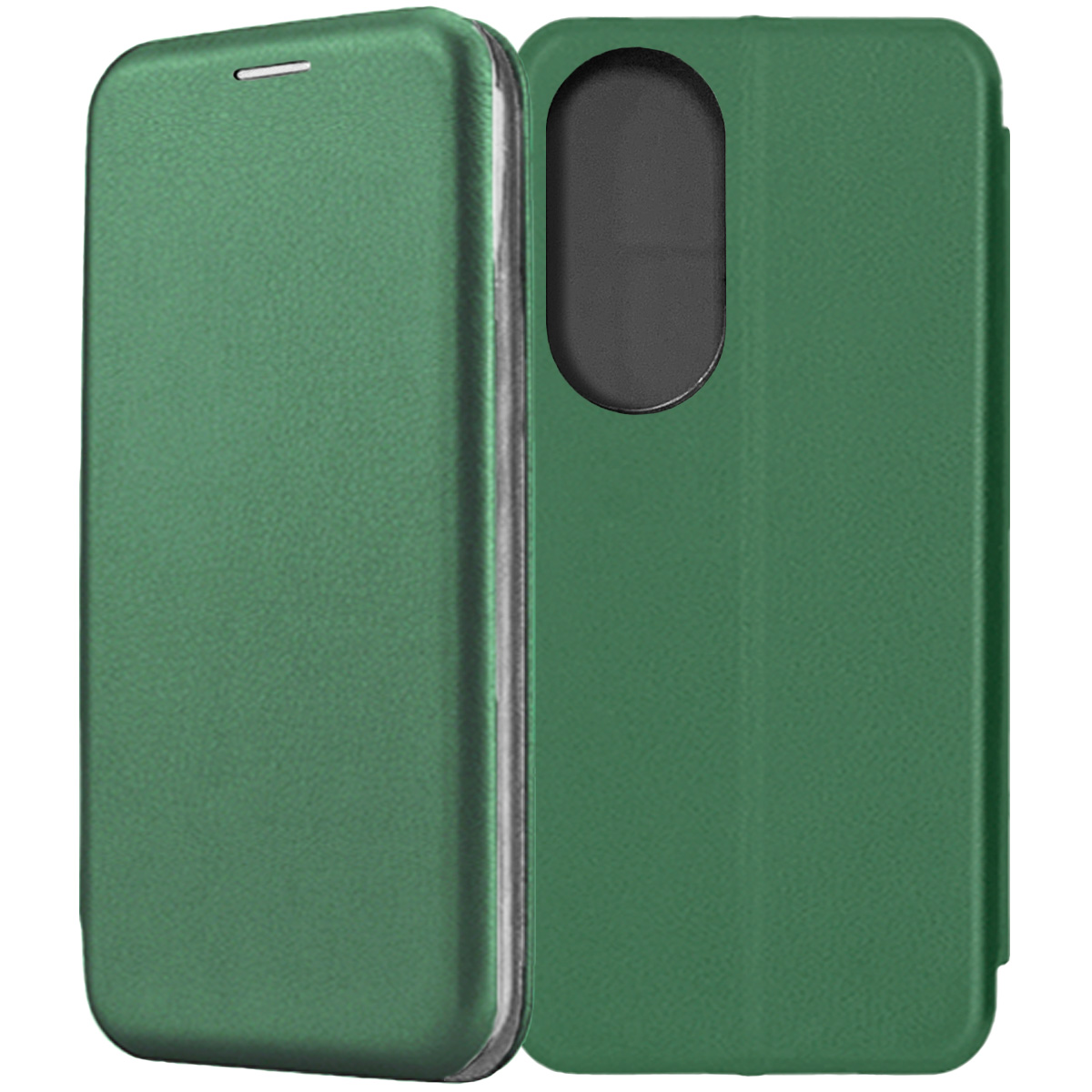 Чехол-книжка Fashion Case зеленого цвета для смартфона Huawei Honor 90 с твердой магнитной 3D обложкой и силиконовой прозрачной вставкой внутри легко трансформируется в удобную подставку, имеет отделение для карт.