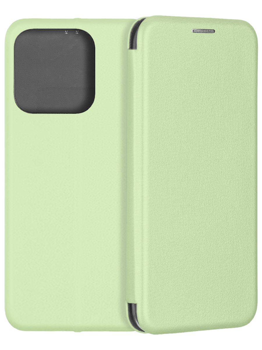 Чехол-книжка Fashion Case фисташкового цвета для смартфона Huawei Honor X8c с твердой магнитной 3D обложкой и силиконовой прозрачной вставкой внутри легко трансформируется в удобную подставку, имеет отделение для карт.