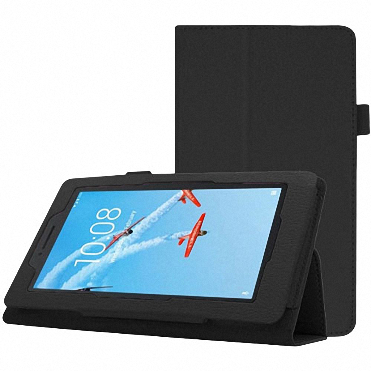 Чехол Book Case Max для Lenovo Tab E7 TB-7104 (диагональ экрана 7.0 дюймов) изготовлен из высококачественной эко-кожи черного цвета, имеет все необходимые вырезы для свободного доступа к камере и разъемам. Магнитная обложка обеспечивает комфортное пользование устройством. Планшет надежно фиксируется в чехле с мягкой подложкой и защищен со всех сторон. Чехол-книжка трансформируется в устойчивую подставку для чтения и просмотра видео.