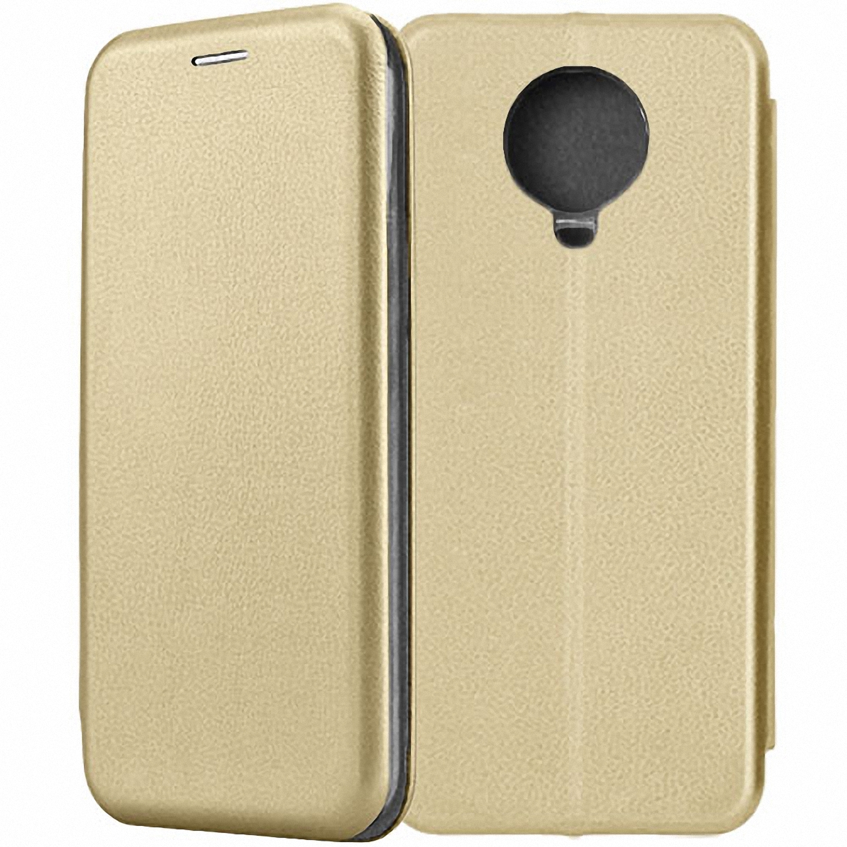 Чехол-книжка Fashion Case золотистого цвета для смартфона Nokia G10 с твердой магнитной 3D обложкой и силиконовой прозрачной вставкой внутри легко трансформируется в удобную подставку, имеет отделение для карт.