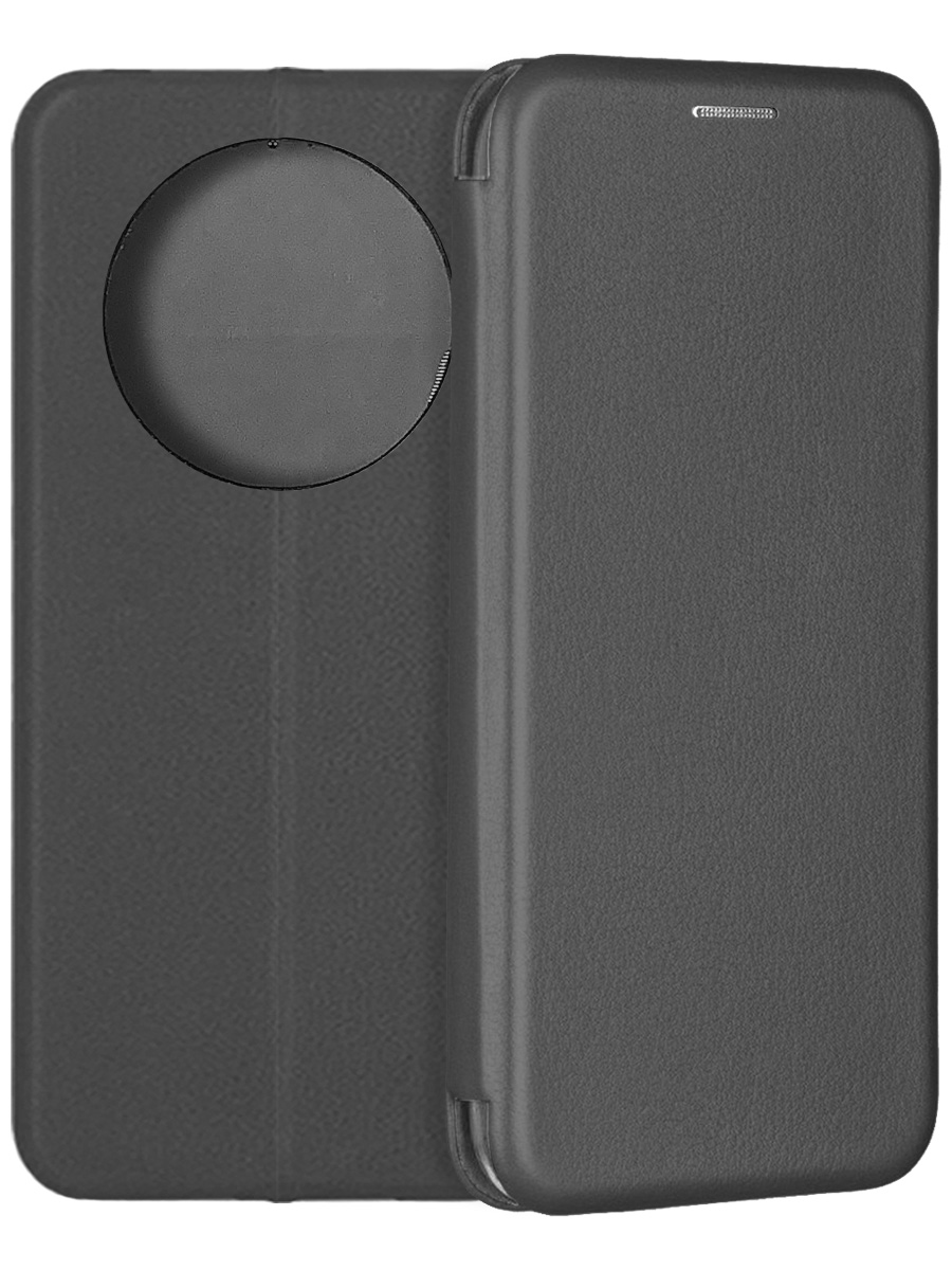 Чехол-книжка Fashion Case черного цвета для смартфона Realme 12 4G с твердой магнитной 3D обложкой и силиконовой прозрачной вставкой внутри легко трансформируется в удобную подставку, имеет отделение для карт.