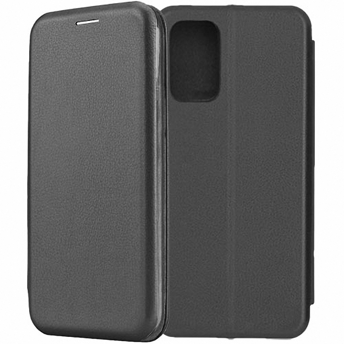 Чехол-книжка Fashion Case черного цвета для смартфона Realme 8 5G с твердой магнитной 3D обложкой и силиконовой прозрачной вставкой внутри легко трансформируется в удобную подставку, имеет отделение для карт.