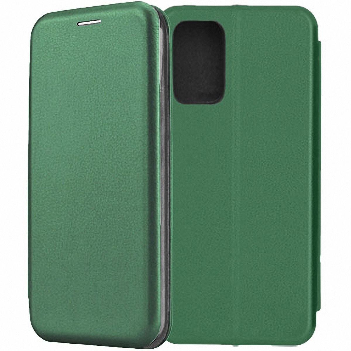 Чехол-книжка Fashion Case зеленого цвета для смартфона Realme 8 5G с твердой магнитной 3D обложкой и силиконовой прозрачной вставкой внутри легко трансформируется в удобную подставку, имеет отделение для карт.