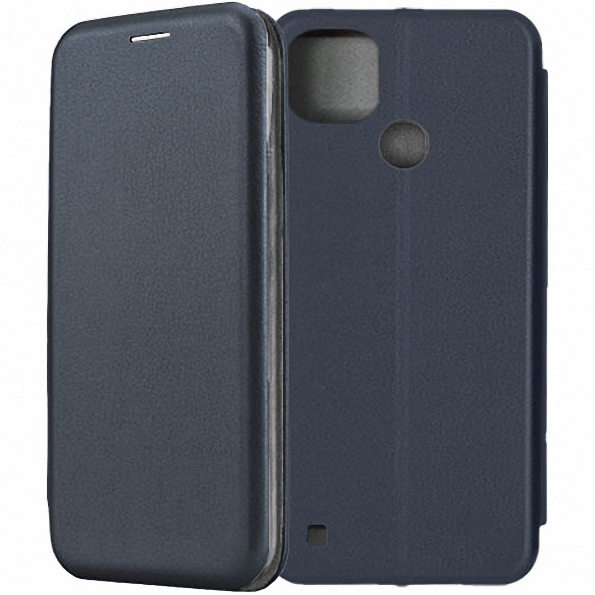 Чехол-книжка Fashion Case темно-синего цвета для смартфона Realme C21Y с твердой магнитной 3D обложкой и силиконовой прозрачной вставкой внутри легко трансформируется в удобную подставку, имеет отделение для карт.