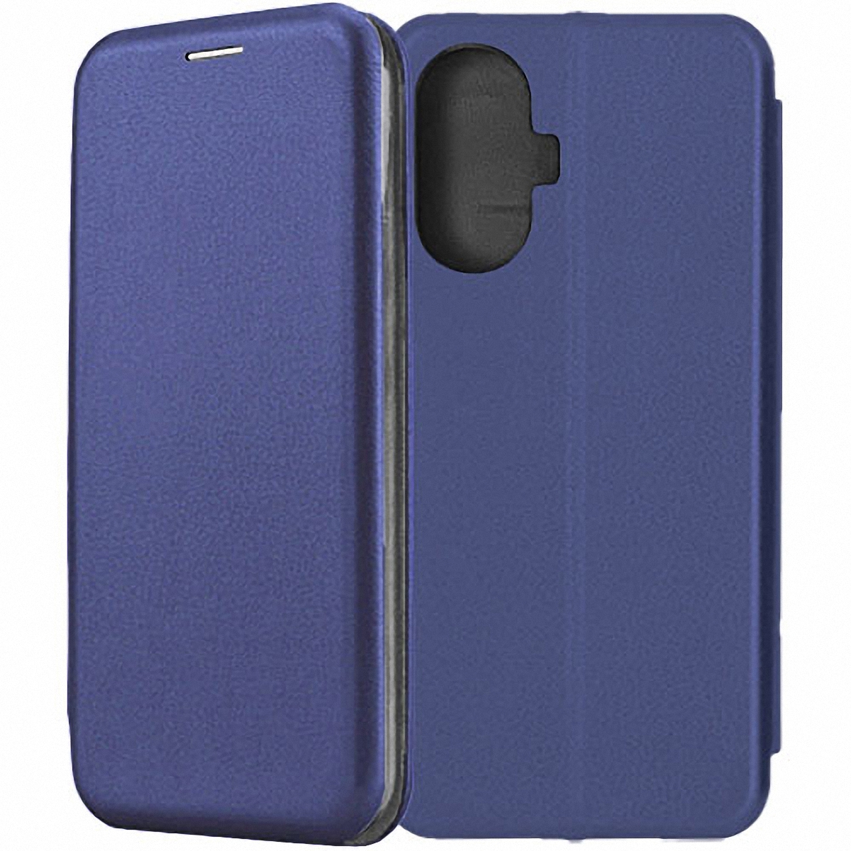 Чехол-книжка Fashion Case синего цвета для смартфона Realme C55 с твердой магнитной 3D обложкой и силиконовой прозрачной вставкой внутри легко трансформируется в удобную подставку, имеет отделение для карт.