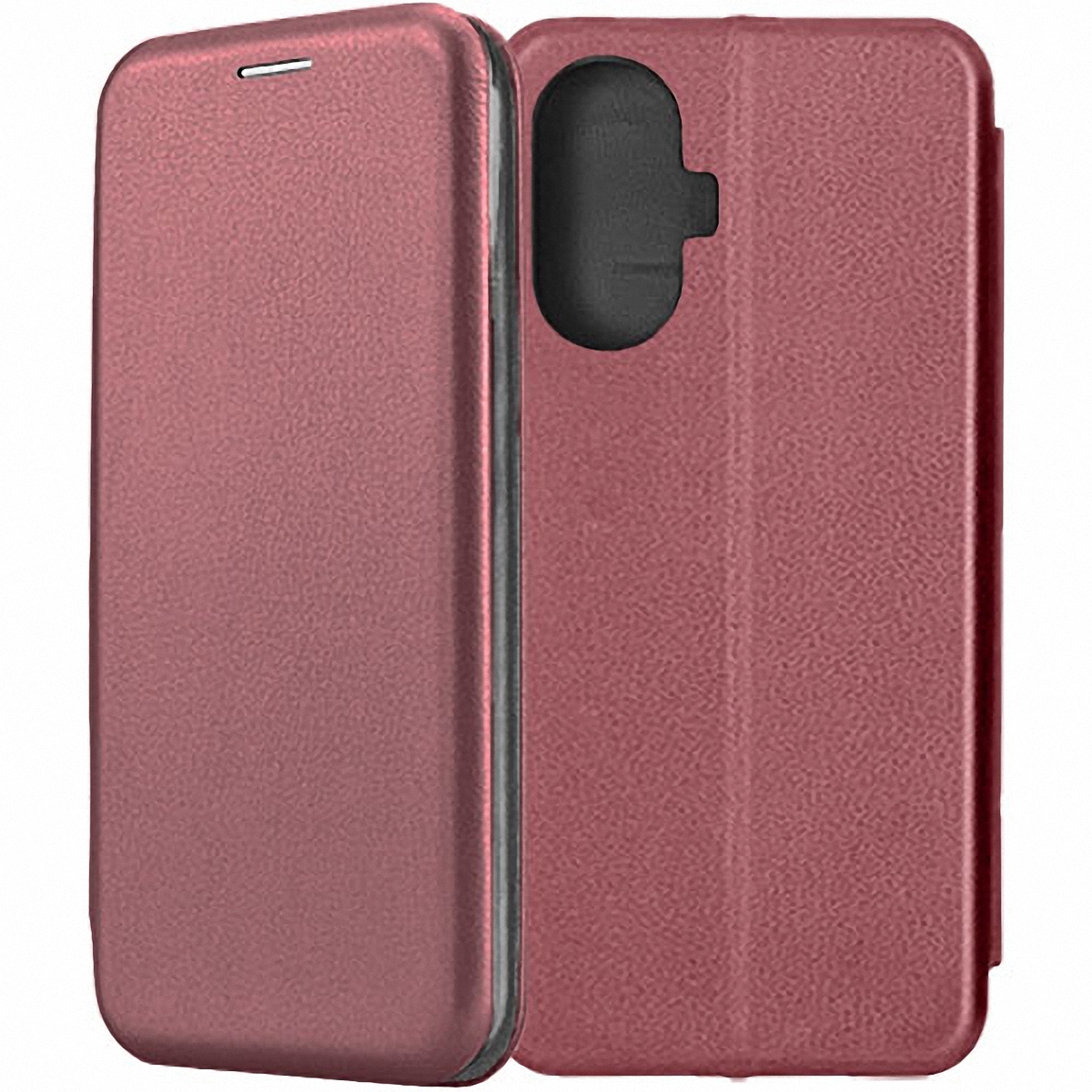 Чехол-книжка Fashion Case темно-красного цвета для смартфона Realme C55 с твердой магнитной 3D обложкой и силиконовой прозрачной вставкой внутри легко трансформируется в удобную подставку, имеет отделение для карт.