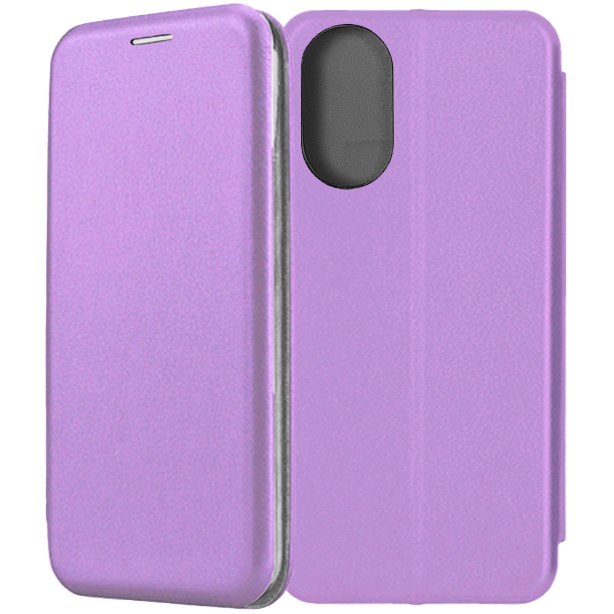 Чехол-книжка Fashion Case фиолетового цвета для смартфона Realme C67 с твердой магнитной 3D обложкой и силиконовой прозрачной вставкой внутри легко трансформируется в удобную подставку, имеет отделение для карт.