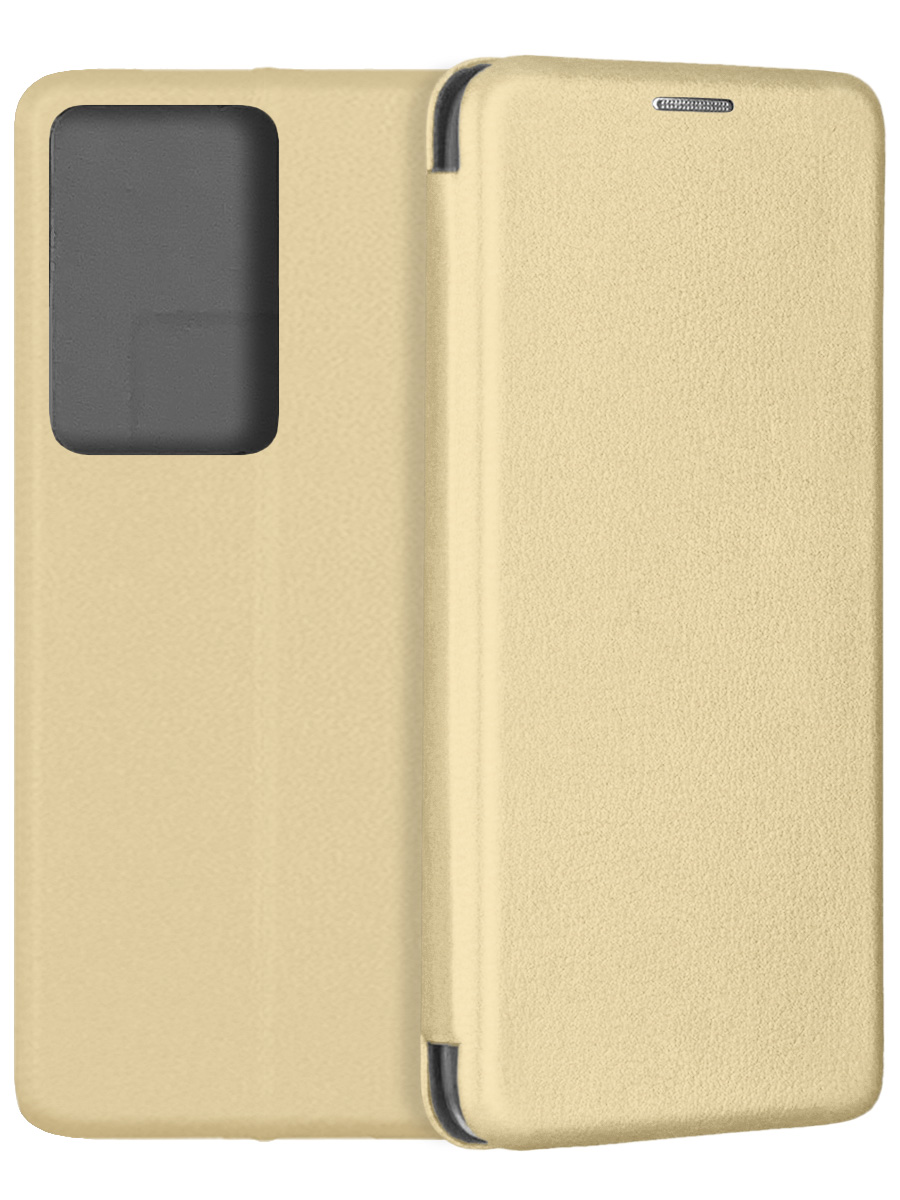 Чехол-книжка Fashion Case золотистого цвета для смартфона Realme C75 с твердой магнитной 3D обложкой и силиконовой прозрачной вставкой внутри легко трансформируется в удобную подставку, имеет отделение для карт.