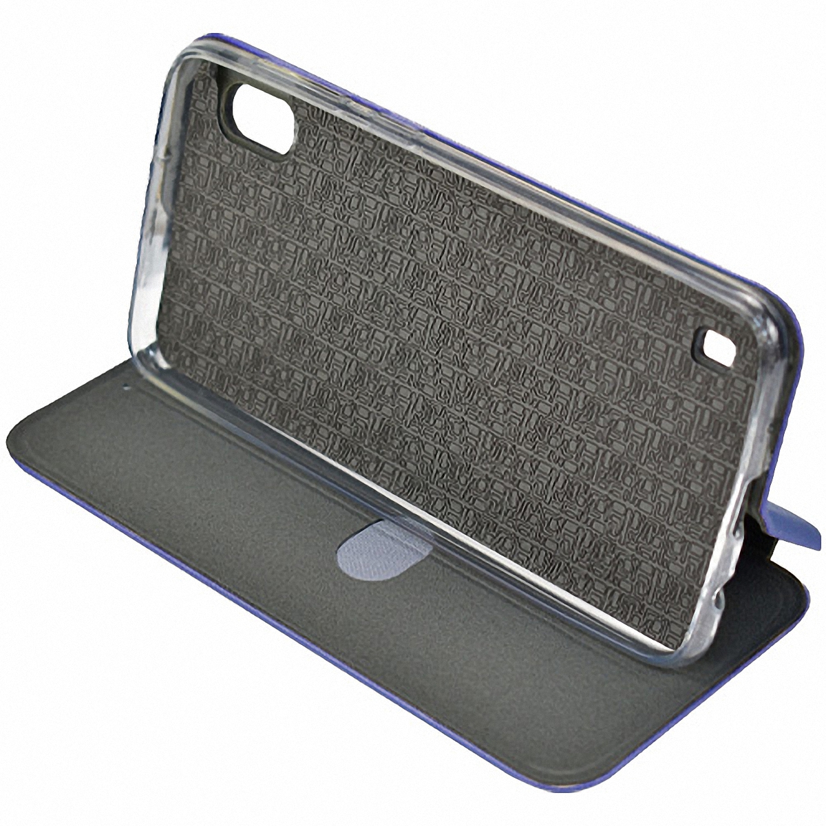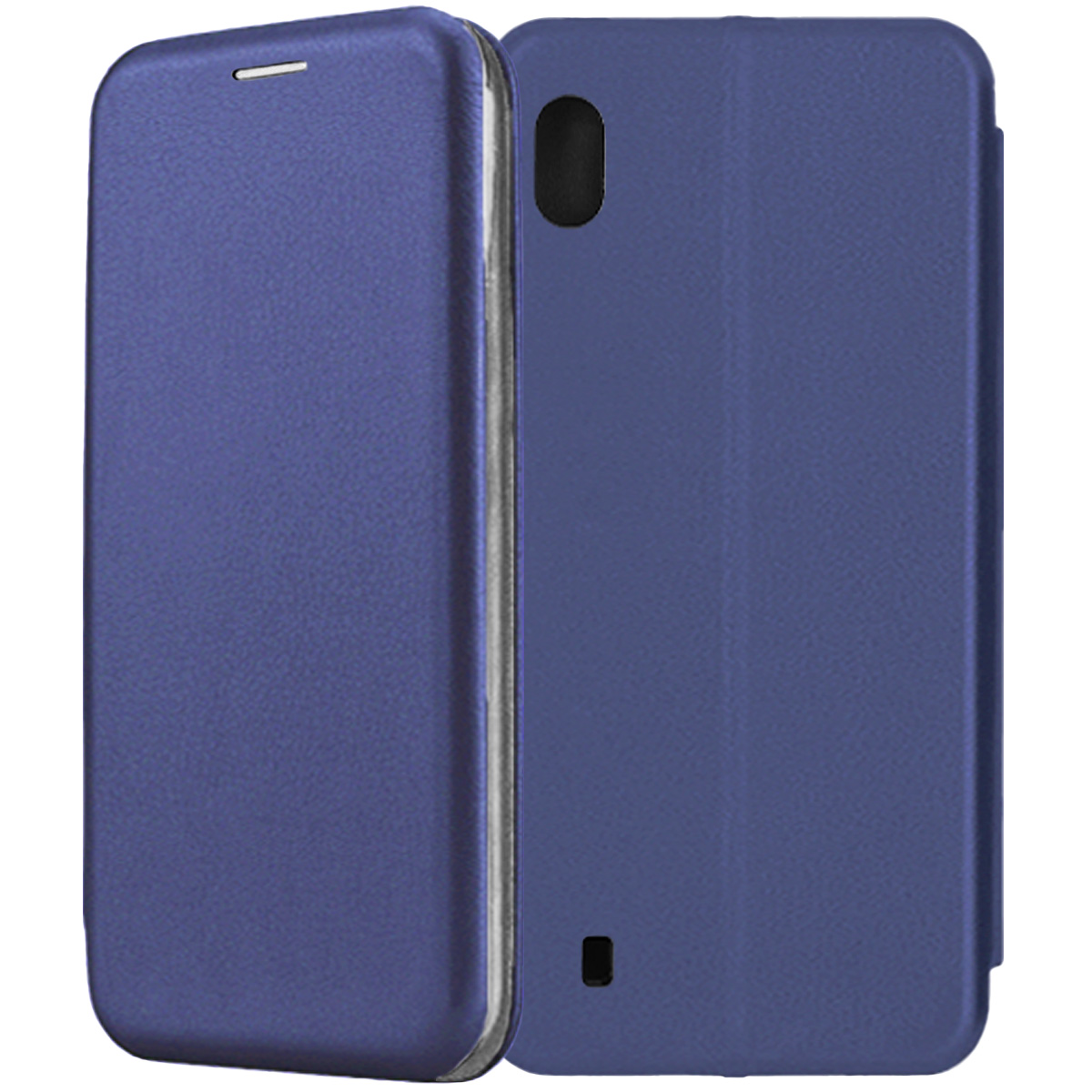Чехол-книжка Fashion Case синего цвета для смартфона Samsung Galaxy A10 A105 с твердой магнитной 3D обложкой и силиконовой прозрачной вставкой внутри легко трансформируется в удобную подставку, имеет отделение для карт.