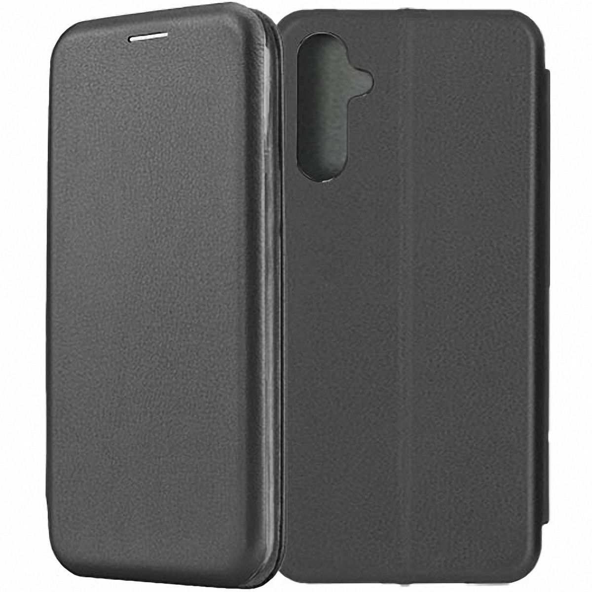 Чехол-книжка Fashion Case черного цвета для смартфона Samsung Galaxy A14 A145 с твердой магнитной 3D обложкой и силиконовой прозрачной вставкой внутри легко трансформируется в удобную подставку, имеет отделение для карт.
