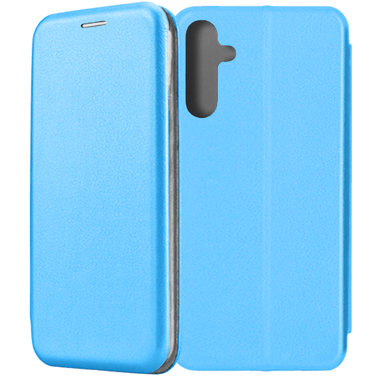 Чехол-книжка Fashion Case голубого цвета для смартфона Samsung Galaxy A15 A155 с твердой магнитной 3D обложкой и силиконовой прозрачной вставкой внутри легко трансформируется в удобную подставку, имеет отделение для карт.