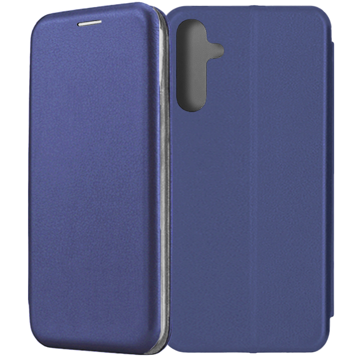 Чехол-книжка Fashion Case синего цвета для смартфона Samsung Galaxy A15 A155 с твердой магнитной 3D обложкой и силиконовой прозрачной вставкой внутри легко трансформируется в удобную подставку, имеет отделение для карт.