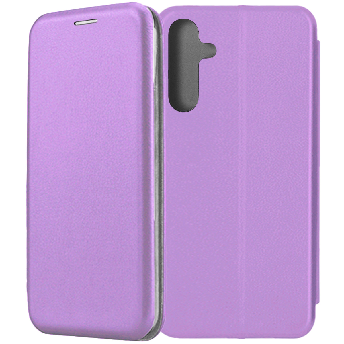 Чехол-книжка Fashion Case фиолетового цвета для смартфона Samsung Galaxy A25 5G A256 с твердой магнитной 3D обложкой и силиконовой прозрачной вставкой внутри легко трансформируется в удобную подставку, имеет отделение для карт.