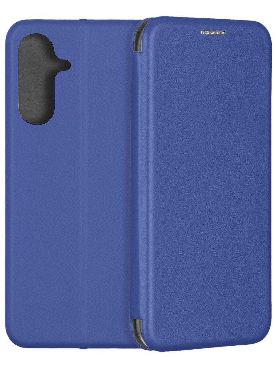 Чехол-книжка Fashion Case синего цвета для смартфона Samsung Galaxy A26 5G A266 с твердой магнитной 3D обложкой и силиконовой прозрачной вставкой внутри легко трансформируется в удобную подставку, имеет отделение для карт.