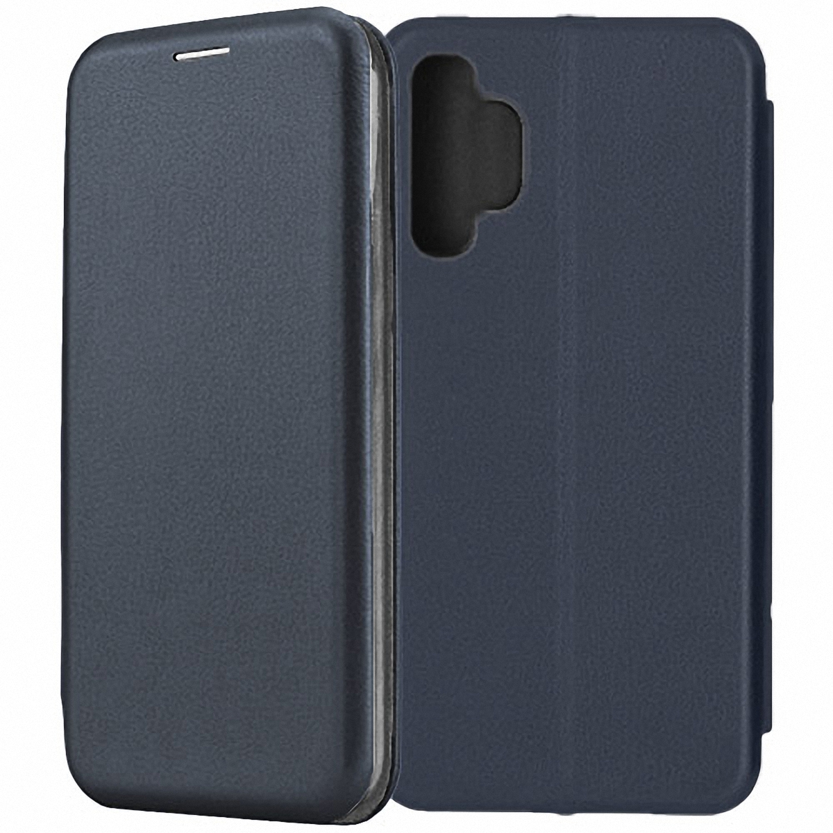 Чехол-книжка Fashion Case темно-синего цвета для смартфона Samsung Galaxy A32 A325 с твердой магнитной 3D обложкой и силиконовой прозрачной вставкой внутри легко трансформируется в удобную подставку, имеет отделение для карт.