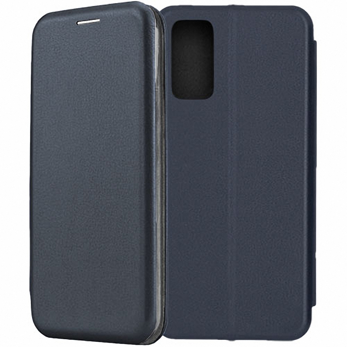 Чехол-книжка Fashion Case темно-синего цвета для смартфона Samsung Galaxy S20 G980 с твердой магнитной 3D обложкой и силиконовой прозрачной вставкой внутри легко трансформируется в удобную подставку, имеет отделение для карт.