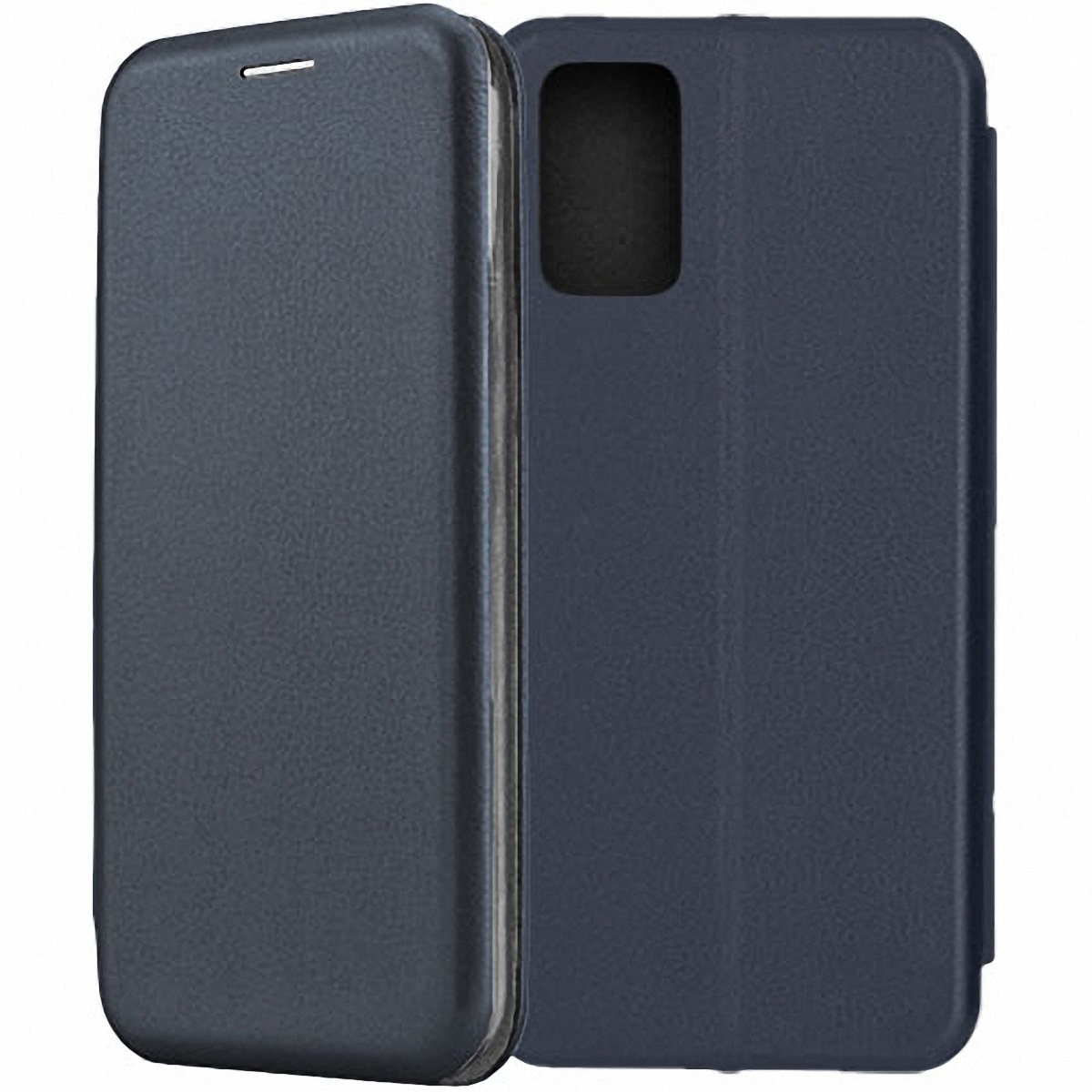 Чехол-книжка Fashion Case темно-синего цвета для смартфона Samsung Galaxy S20+ G985 с твердой магнитной 3D обложкой и силиконовой прозрачной вставкой внутри легко трансформируется в удобную подставку, имеет отделение для карт.