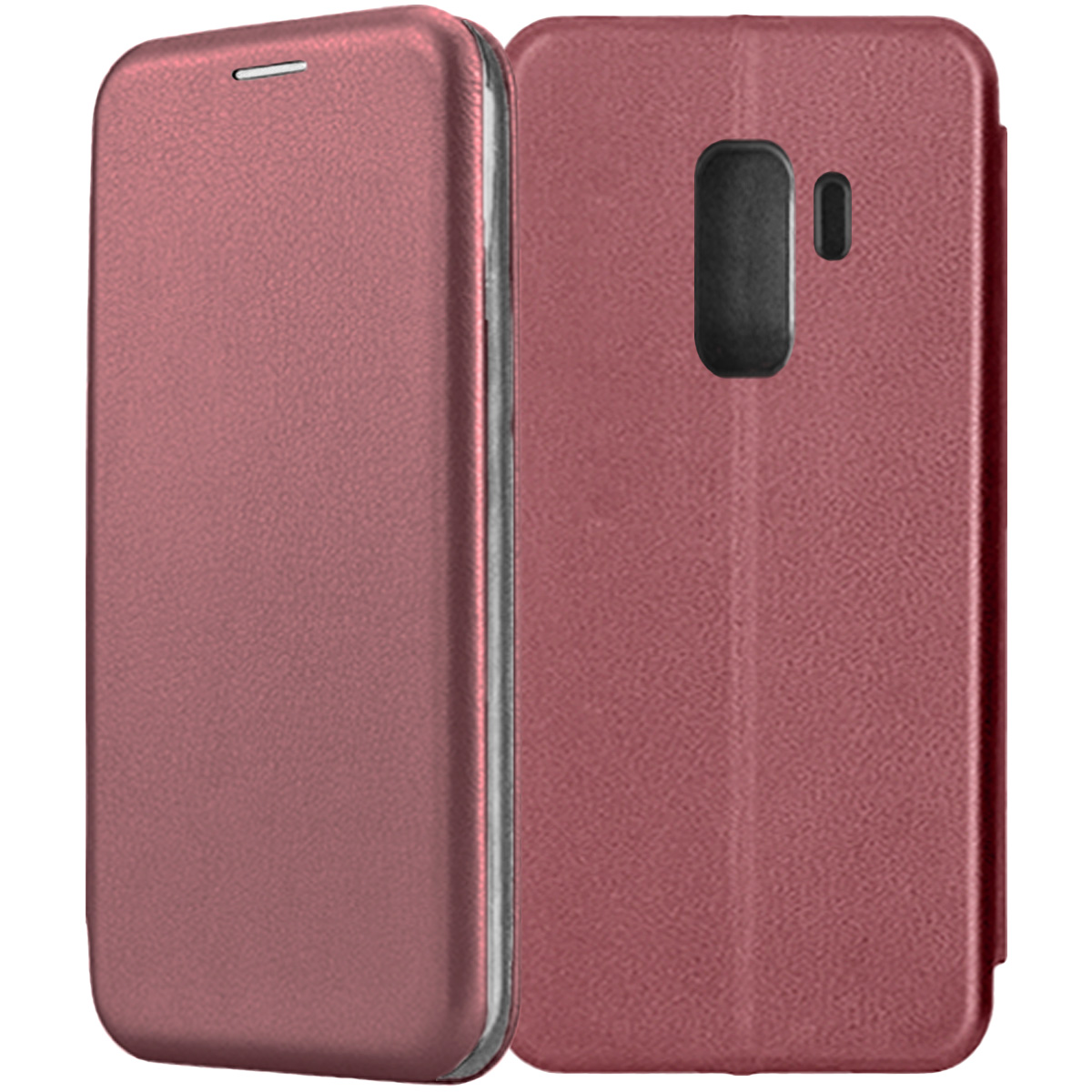 Чехол-книжка Fashion Case темно-красного цвета для смартфона Samsung Galaxy S9+ G965 с твердой магнитной 3D обложкой и силиконовой прозрачной вставкой внутри легко трансформируется в удобную подставку, имеет отделение для карт.