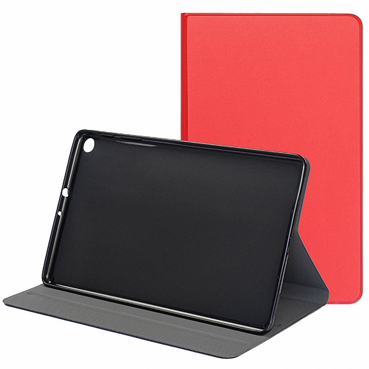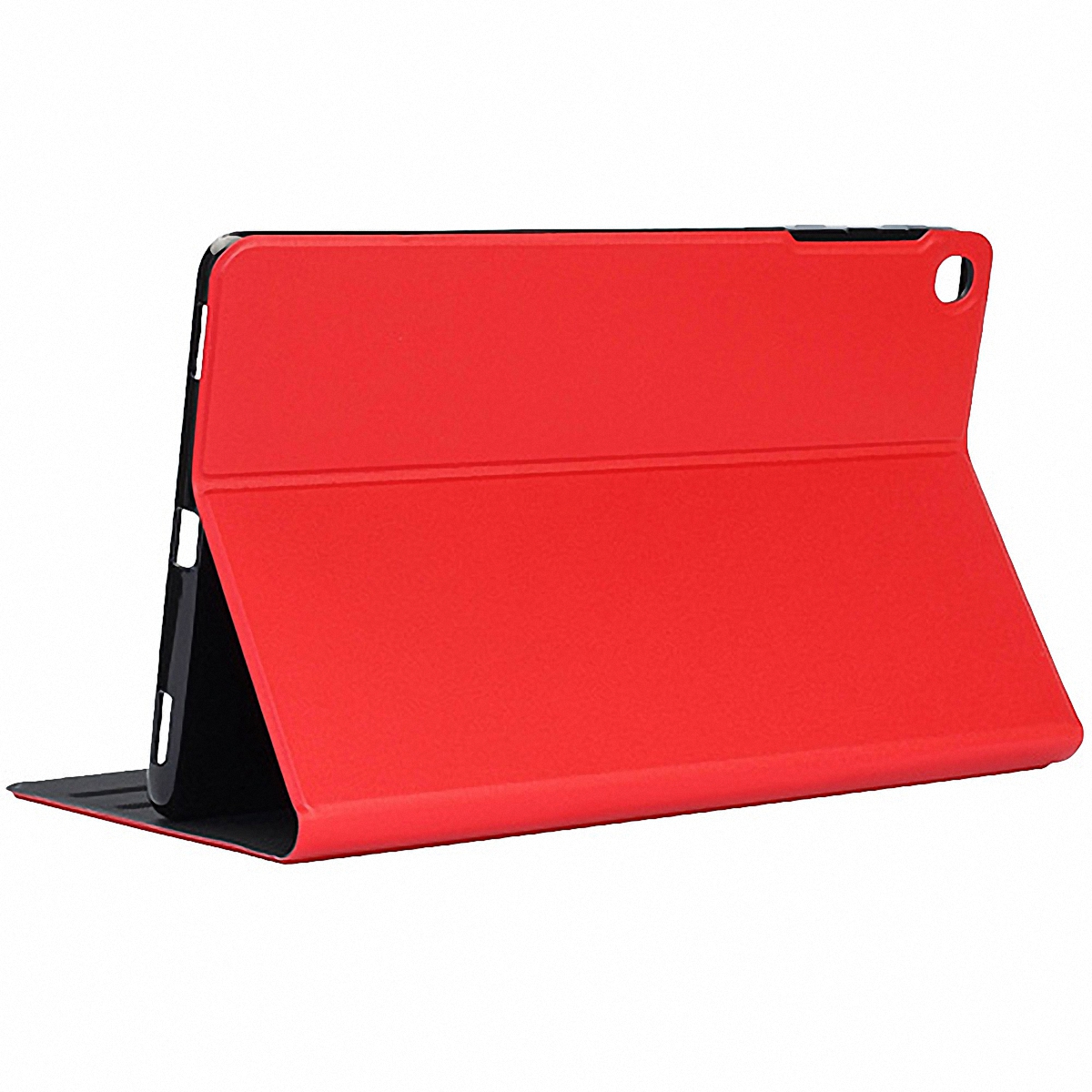 Чехол-обложка MacCase для Samsung Galaxy Tab A 10.1 (2019) (SM-T510 / SM-T515, диагональ экрана 10.1 дюймов) с черной плотной силиконовой накладкой внутри и PU обложкой красного цвета надежно защищает планшет со всех сторон. Чехол-книжка трансформируется в подставку для чтения и просмотра видео.