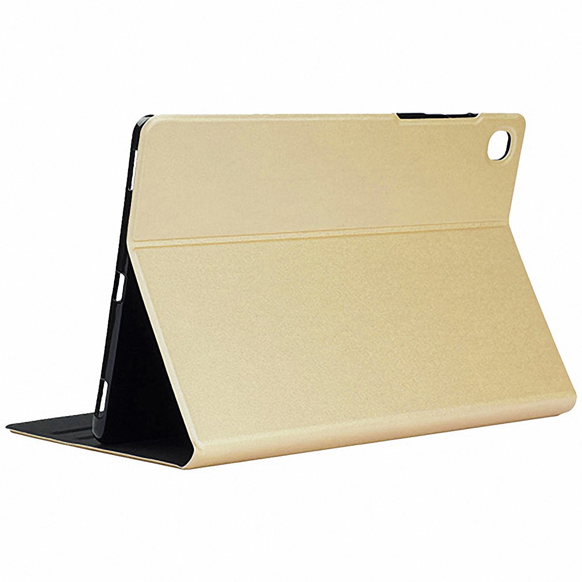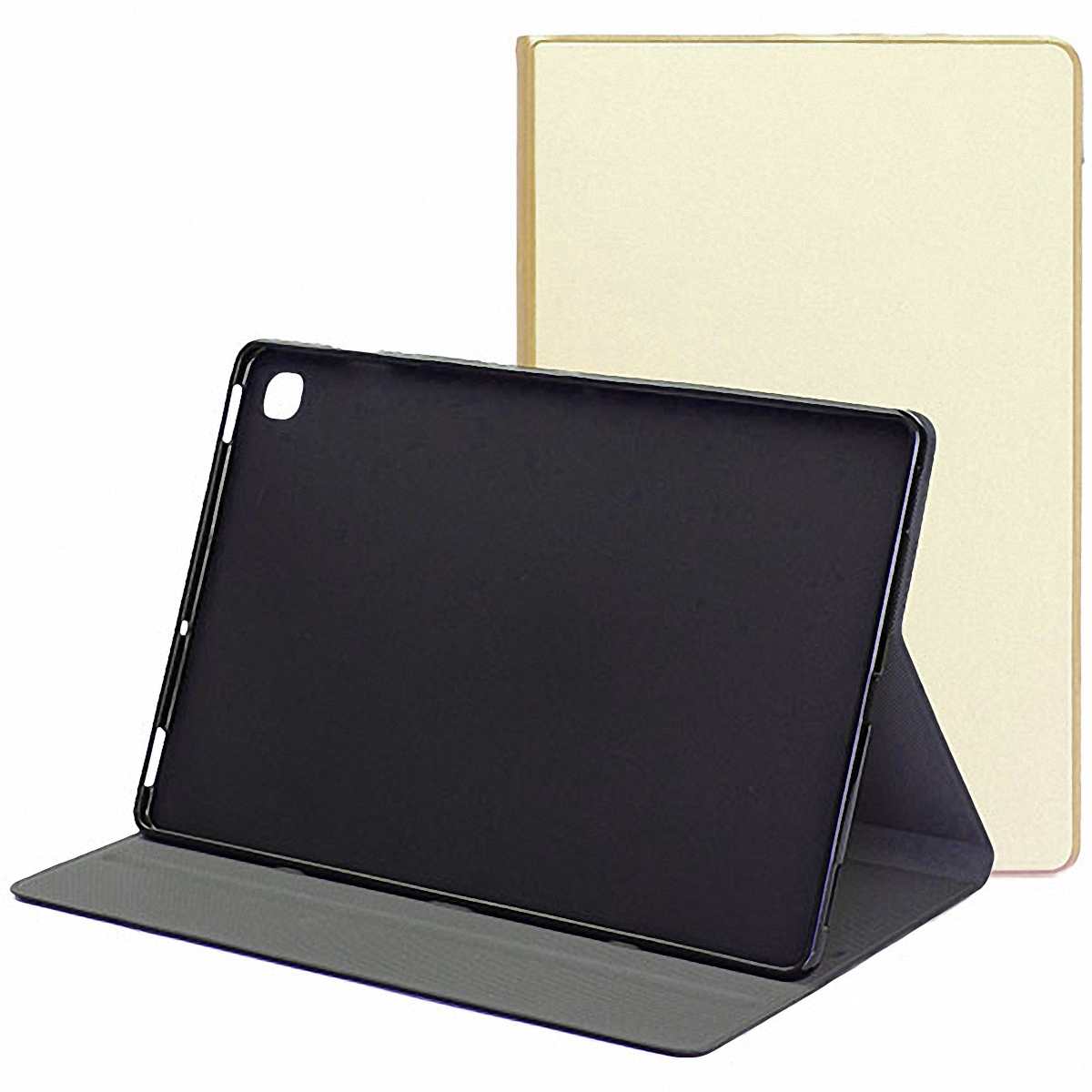 Чехол-обложка MacCase для Samsung Galaxy Tab S5e (SM-T720 / SM-T725, диагональ экрана 10.5 дюймов) с черной плотной силиконовой накладкой внутри и PU обложкой золотистого цвета надежно защищает планшет со всех сторон. Чехол-книжка трансформируется в подставку для чтения и просмотра видео.