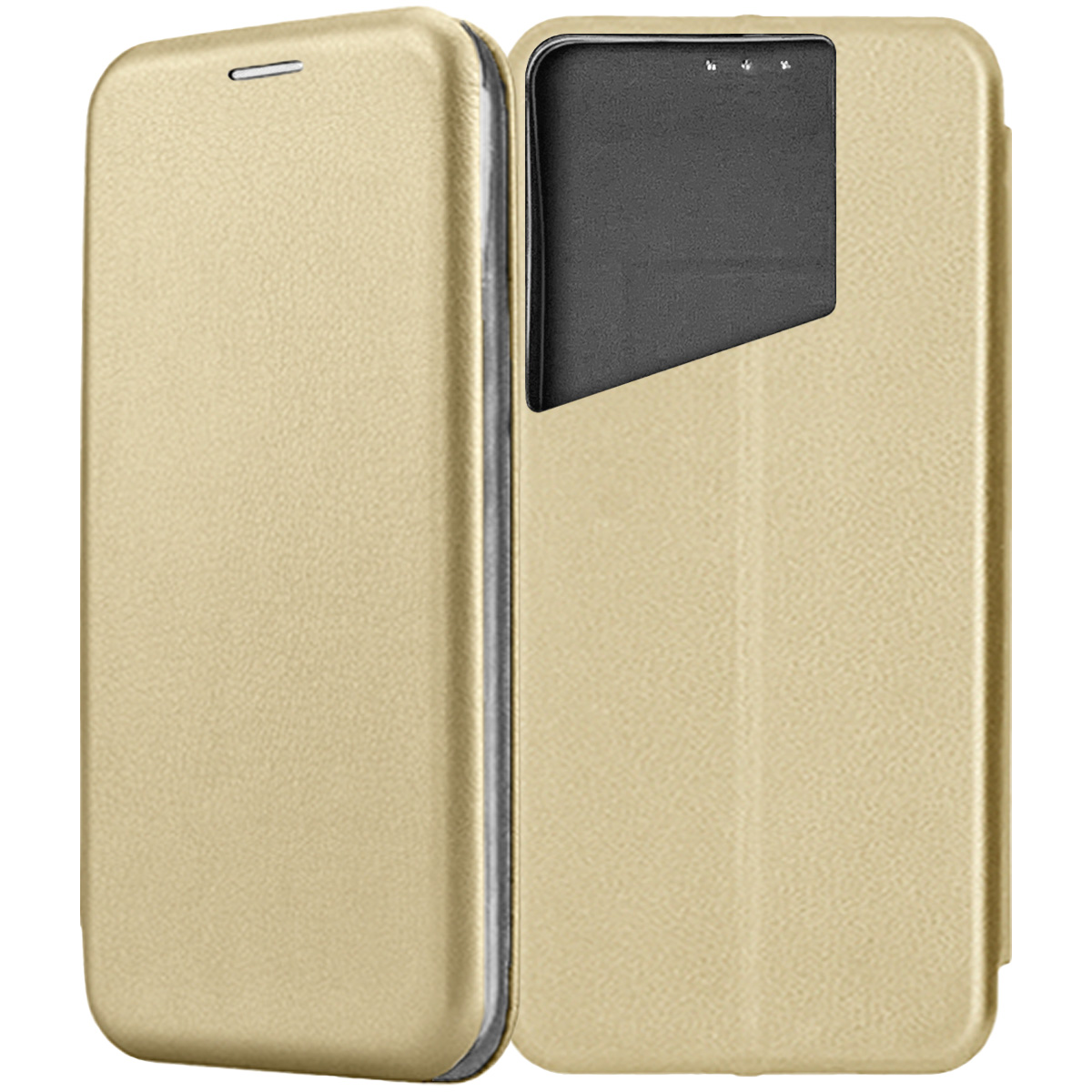 Чехол-книжка Fashion Case золотистого цвета для смартфона TECNO Pova 5 с твердой магнитной 3D обложкой и силиконовой прозрачной вставкой внутри легко трансформируется в удобную подставку, имеет отделение для карт.