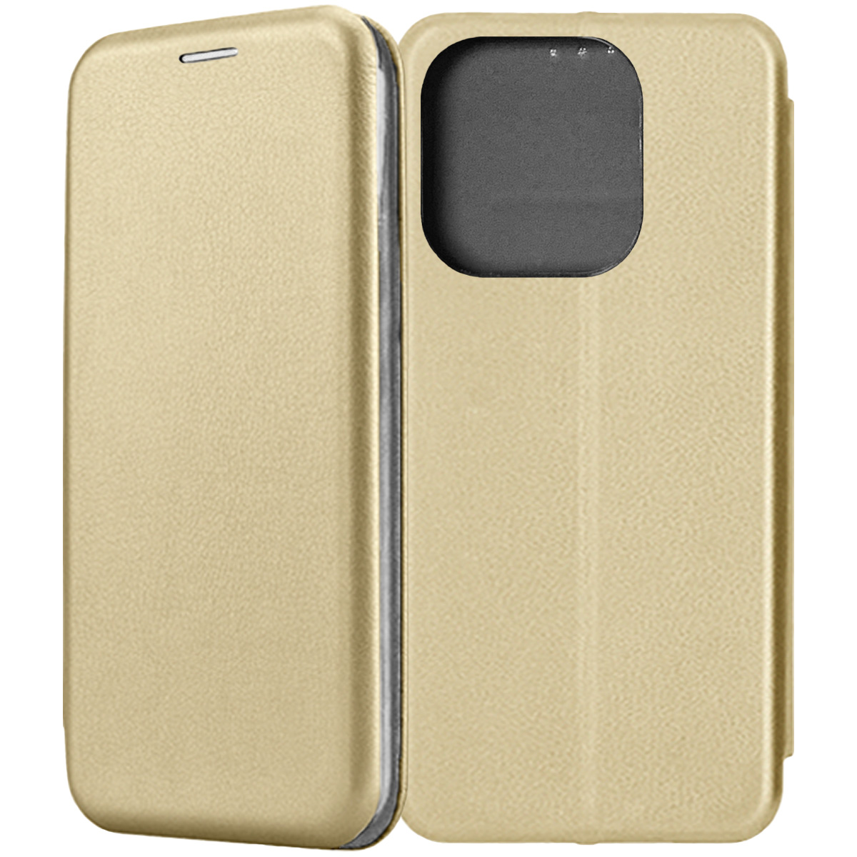 Чехол-книжка Fashion Case золотистого цвета для смартфона TECNO Spark 10 Pro с твердой магнитной 3D обложкой и силиконовой прозрачной вставкой внутри легко трансформируется в удобную подставку, имеет отделение для карт.