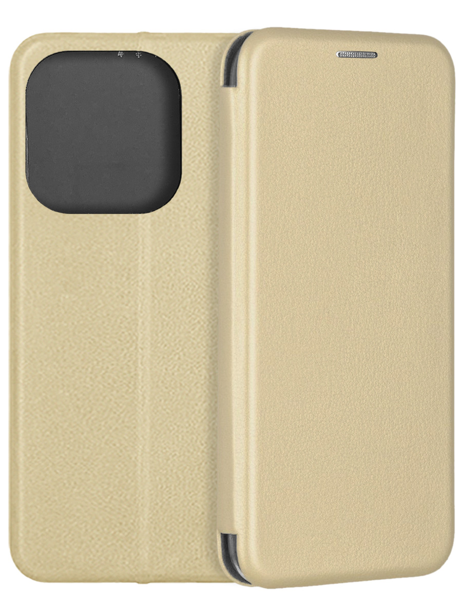 Чехол-книжка Fashion Case золотистого цвета для смартфона TECNO Spark 20 Pro с твердой магнитной 3D обложкой и силиконовой прозрачной вставкой внутри легко трансформируется в удобную подставку, имеет отделение для карт.