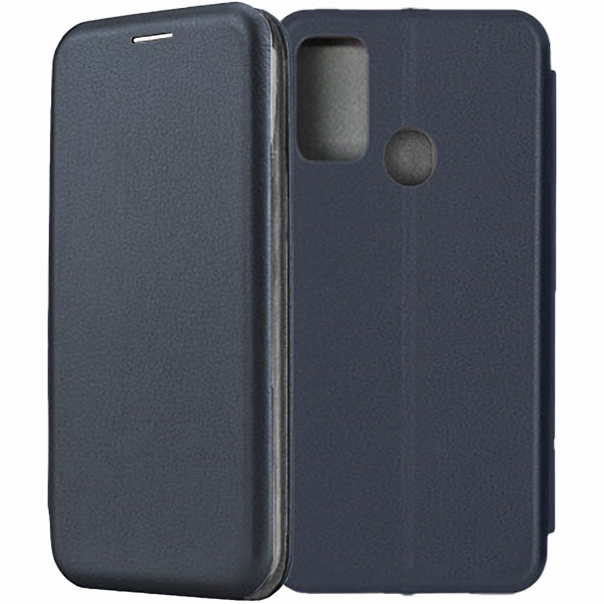 Чехол-книжка Fashion Case темно-синего цвета для смартфона TECNO Spark 7 с твердой магнитной 3D обложкой и силиконовой прозрачной вставкой внутри легко трансформируется в удобную подставку, имеет отделение для карт.