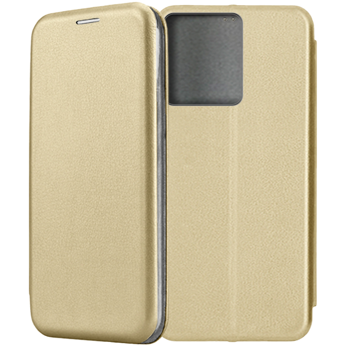 Чехол-книжка Fashion Case золотистого цвета для смартфона VIVO Y35 с твердой магнитной 3D обложкой и силиконовой прозрачной вставкой внутри легко трансформируется в удобную подставку, имеет отделение для карт.