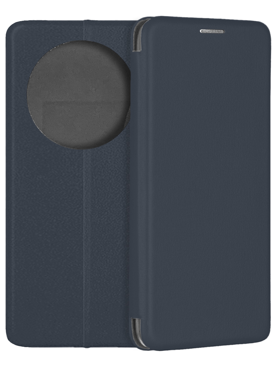 Чехол-книжка Fashion Case темно-синего цвета для смартфона Xiaomi POCO C75 с твердой магнитной 3D обложкой и силиконовой прозрачной вставкой внутри легко трансформируется в удобную подставку, имеет отделение для карт.
