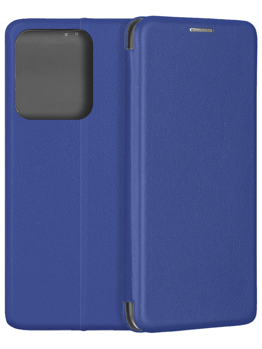 Чехол-книжка Fashion Case синего цвета для смартфона Xiaomi POCO C85 с твердой магнитной 3D обложкой и силиконовой прозрачной вставкой внутри легко трансформируется в удобную подставку, имеет отделение для карт.