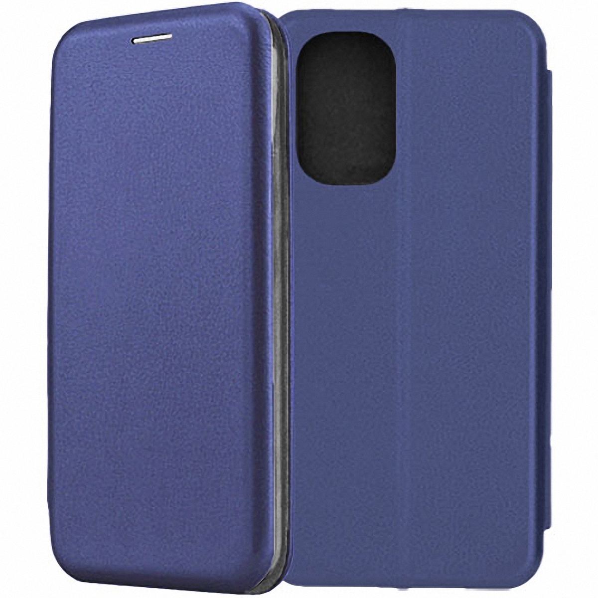 Чехол-книжка Fashion Case синего цвета для смартфона Xiaomi POCO F3 с твердой магнитной 3D обложкой и силиконовой прозрачной вставкой внутри легко трансформируется в удобную подставку, имеет отделение для карт.