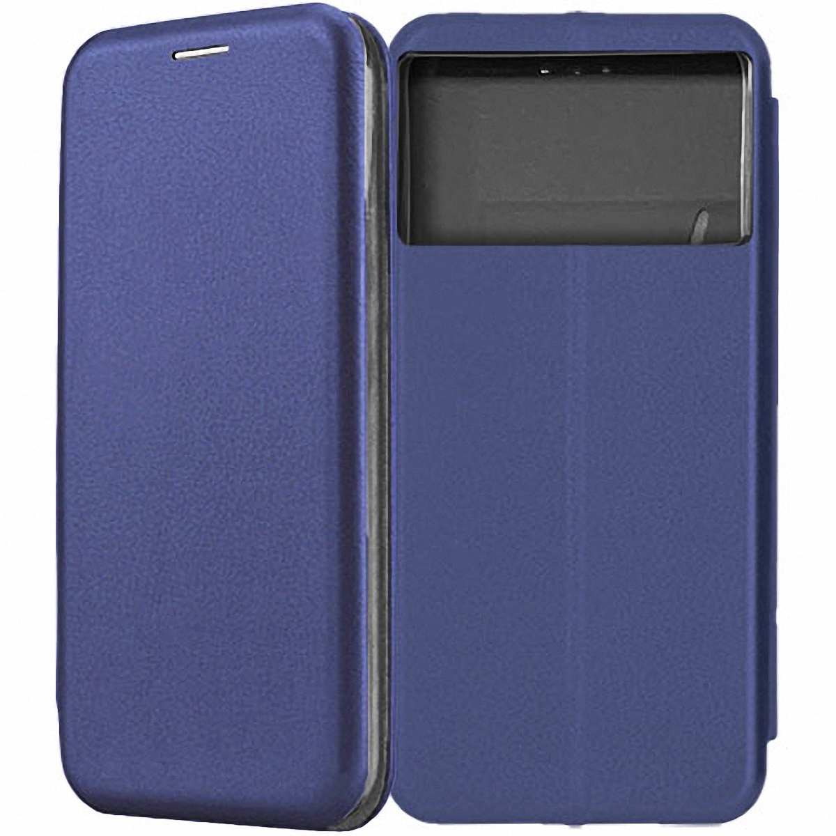 Чехол-книжка Fashion Case синего цвета для смартфона Xiaomi POCO M5 с твердой магнитной 3D обложкой и силиконовой прозрачной вставкой внутри легко трансформируется в удобную подставку, имеет отделение для карт.