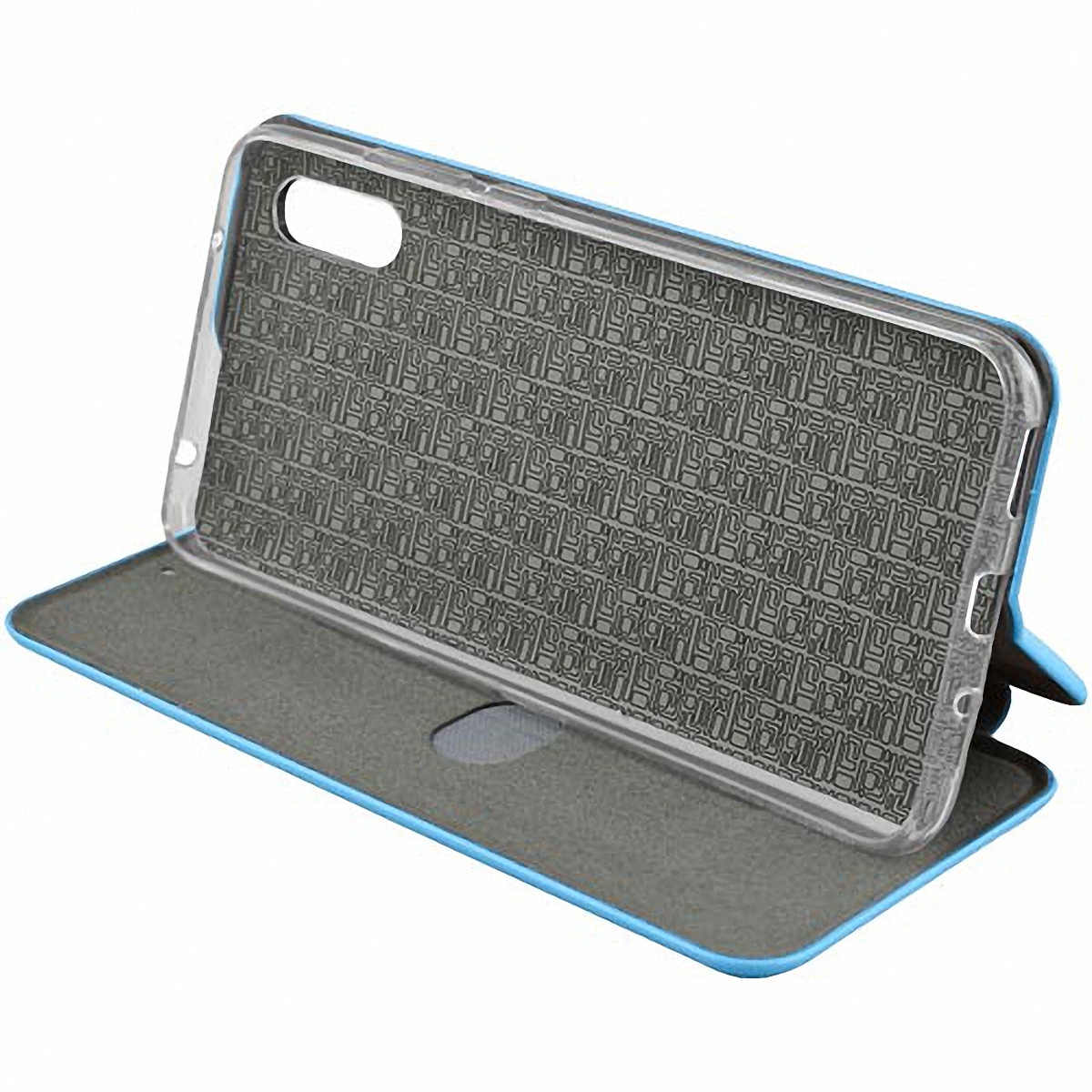 Чехол-книжка Fashion Case голубого цвета для смартфона Xiaomi Redmi 9A с твердой магнитной 3D обложкой и силиконовой прозрачной вставкой внутри легко трансформируется в удобную подставку, имеет отделение для карт.