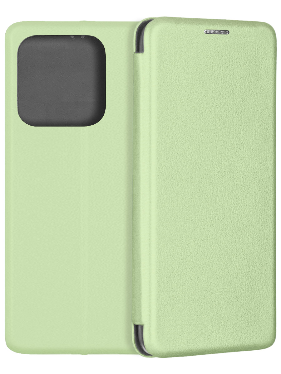 Чехол-книжка Fashion Case фисташкового цвета для смартфона Xiaomi Redmi Note 14 4G с твердой магнитной 3D обложкой и силиконовой прозрачной вставкой внутри легко трансформируется в удобную подставку, имеет отделение для карт.