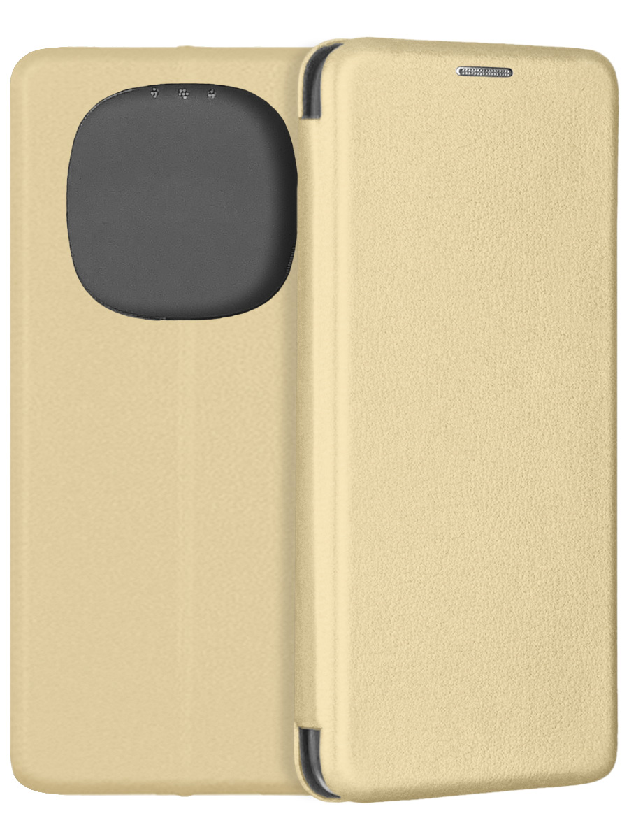Чехол-книжка Fashion Case золотистого цвета для смартфона Xiaomi Redmi Note 14 Pro 4G с твердой магнитной 3D обложкой и силиконовой прозрачной вставкой внутри легко трансформируется в удобную подставку, имеет отделение для карт.