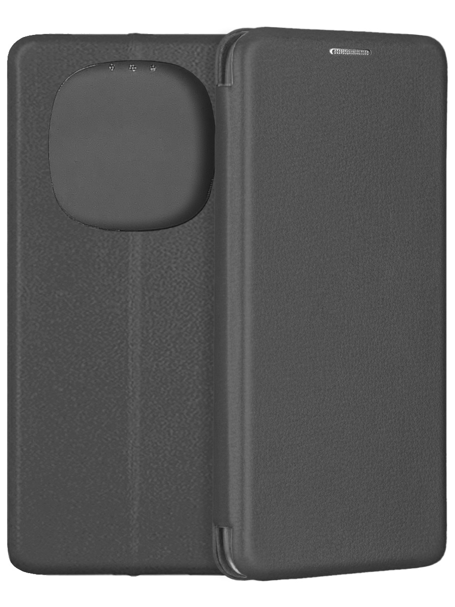 Чехол-книжка Fashion Case черного цвета для смартфона Xiaomi Redmi Note 14 Pro+ 5G с твердой магнитной 3D обложкой и силиконовой прозрачной вставкой внутри легко трансформируется в удобную подставку, имеет отделение для карт.
