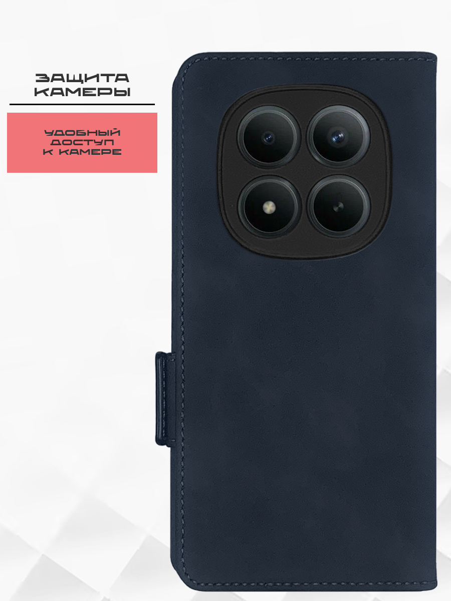 Чехол-книжка MSCase темно-синего цвета для смартфона Xiaomi Redmi Note 15 Pro+ 5G с твердой магнитной обложкой и силиконовой вставкой внутри легко трансформируется в удобную подставку, имеет отделение для карт.