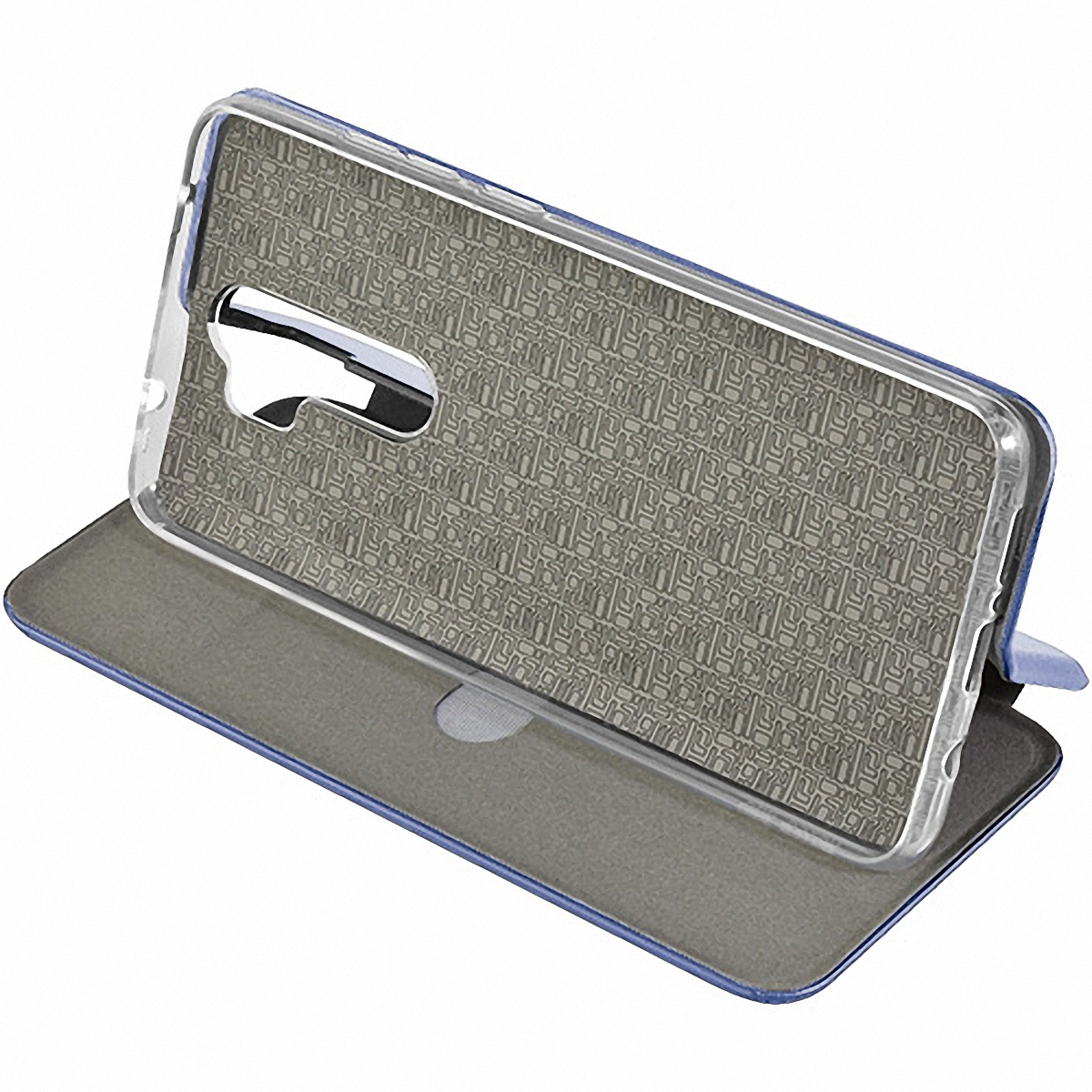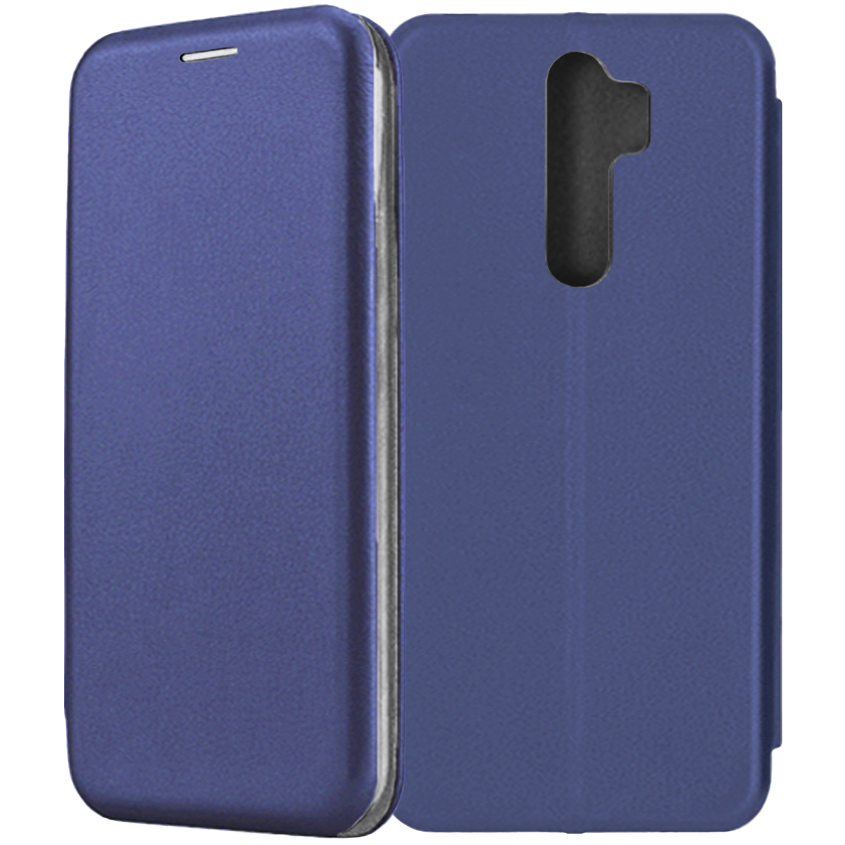 Чехол-книжка Fashion Case синего цвета для смартфона Xiaomi Redmi Note 8 Pro с твердой магнитной 3D обложкой и силиконовой прозрачной вставкой внутри легко трансформируется в удобную подставку, имеет отделение для карт.