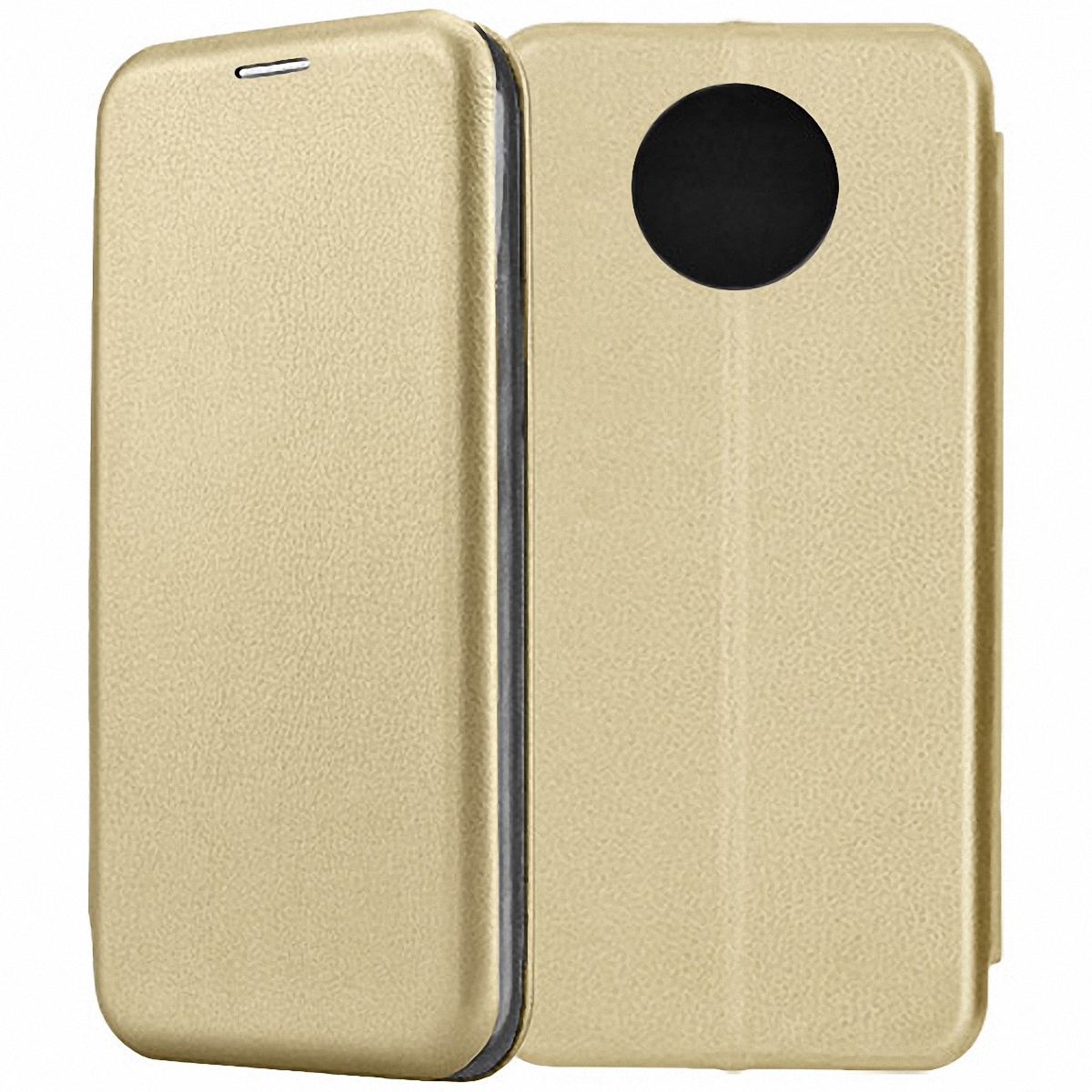 Чехол-книжка Fashion Case золотистого цвета для смартфона Xiaomi Redmi Note 9T с твердой магнитной 3D обложкой и силиконовой прозрачной вставкой внутри легко трансформируется в удобную подставку, имеет отделение для карт.