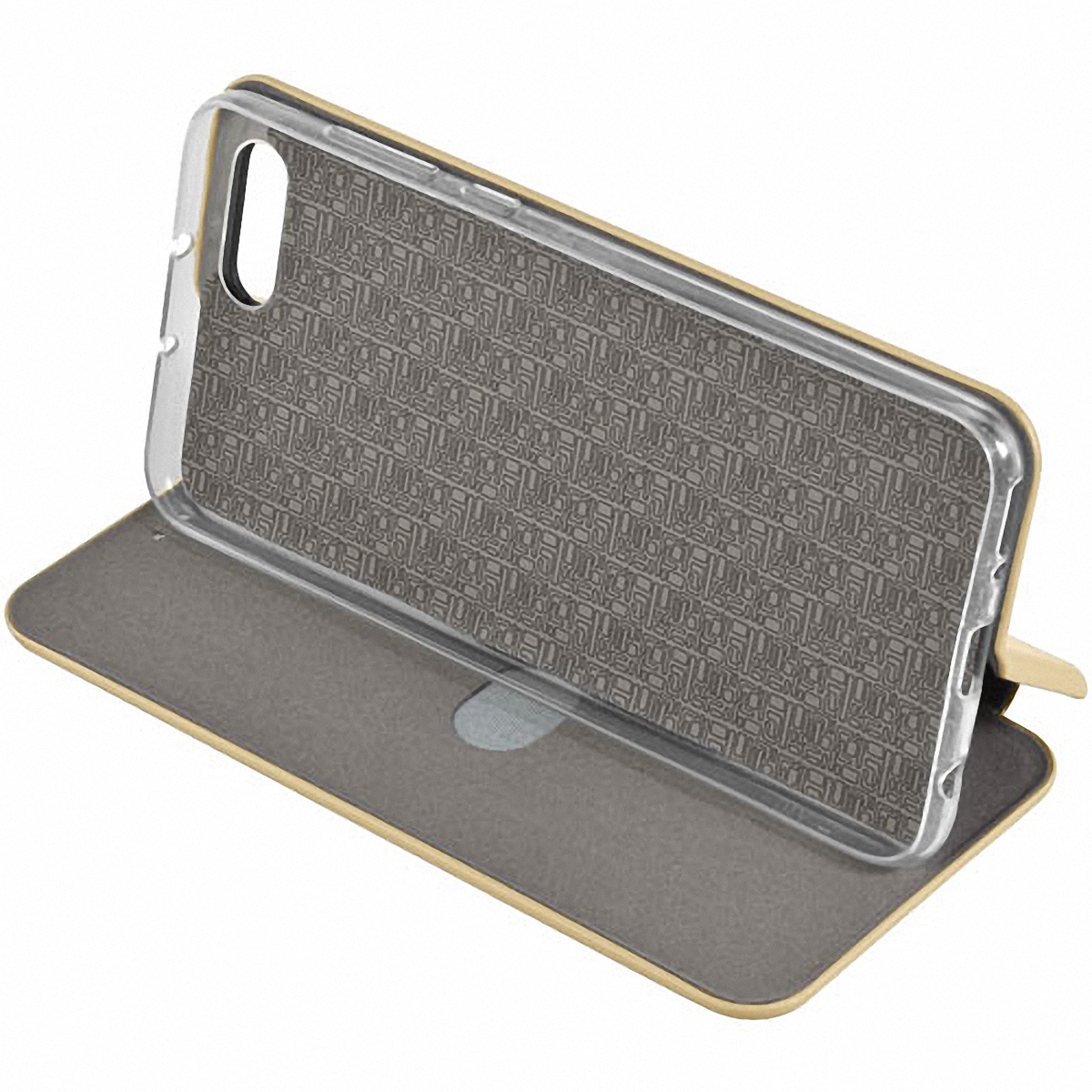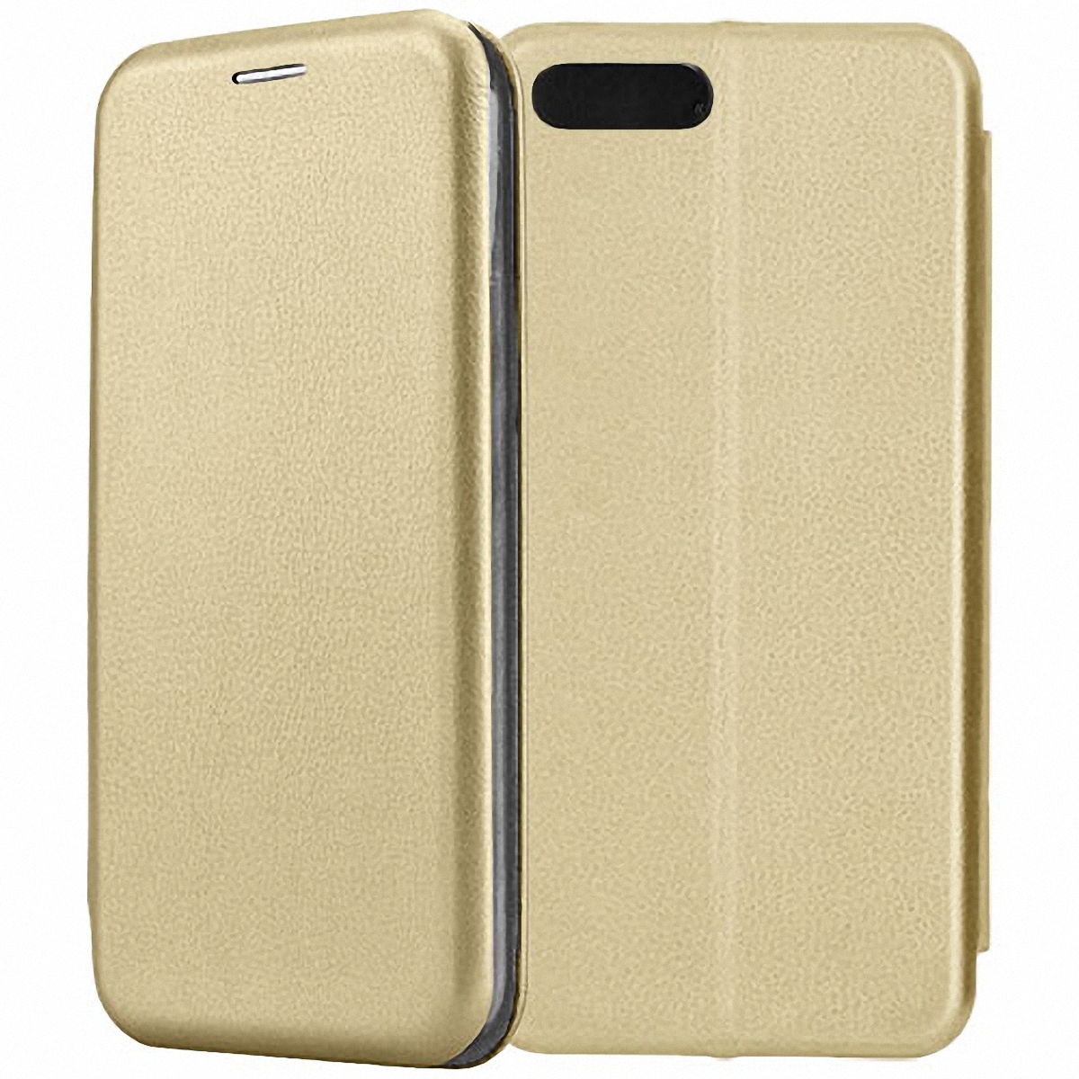 Чехол-книжка Fashion Case золотистого цвета для смартфона Huawei Honor View 10 с твердой магнитной 3D обложкой и силиконовой прозрачной вставкой внутри легко трансформируется в удобную подставку, имеет отделение для карт.