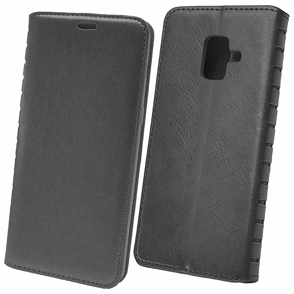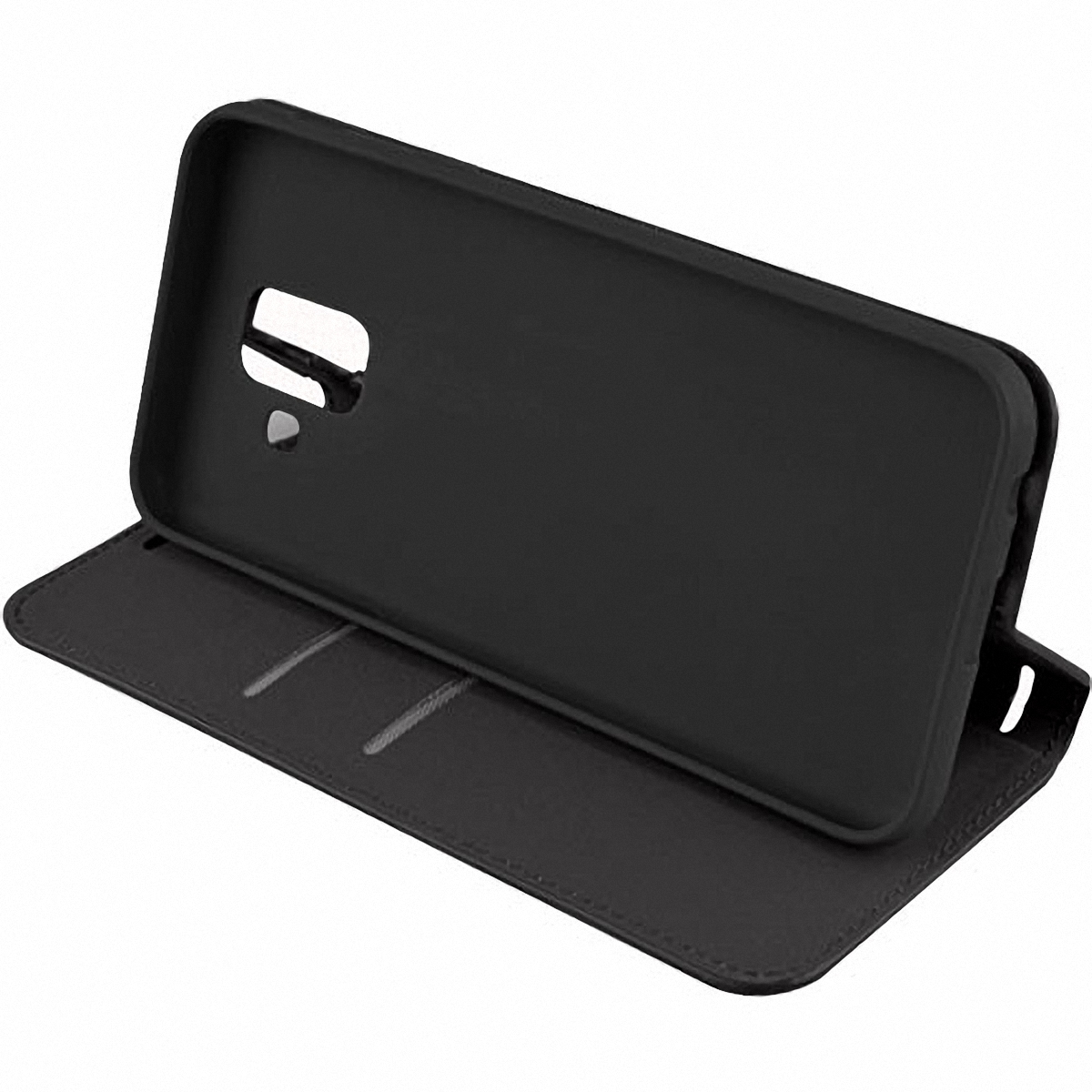 Черный чехол-книжка Book Case для Samsung Galaxy A6 (2018) A600 с магнитной обложкой и перфорацией в месте сгиба. Мягкая силиконовая TPU вставка в цвет кейса для надежной фиксации смартфона. Складывается в подставку для комфортного просмотра видео.