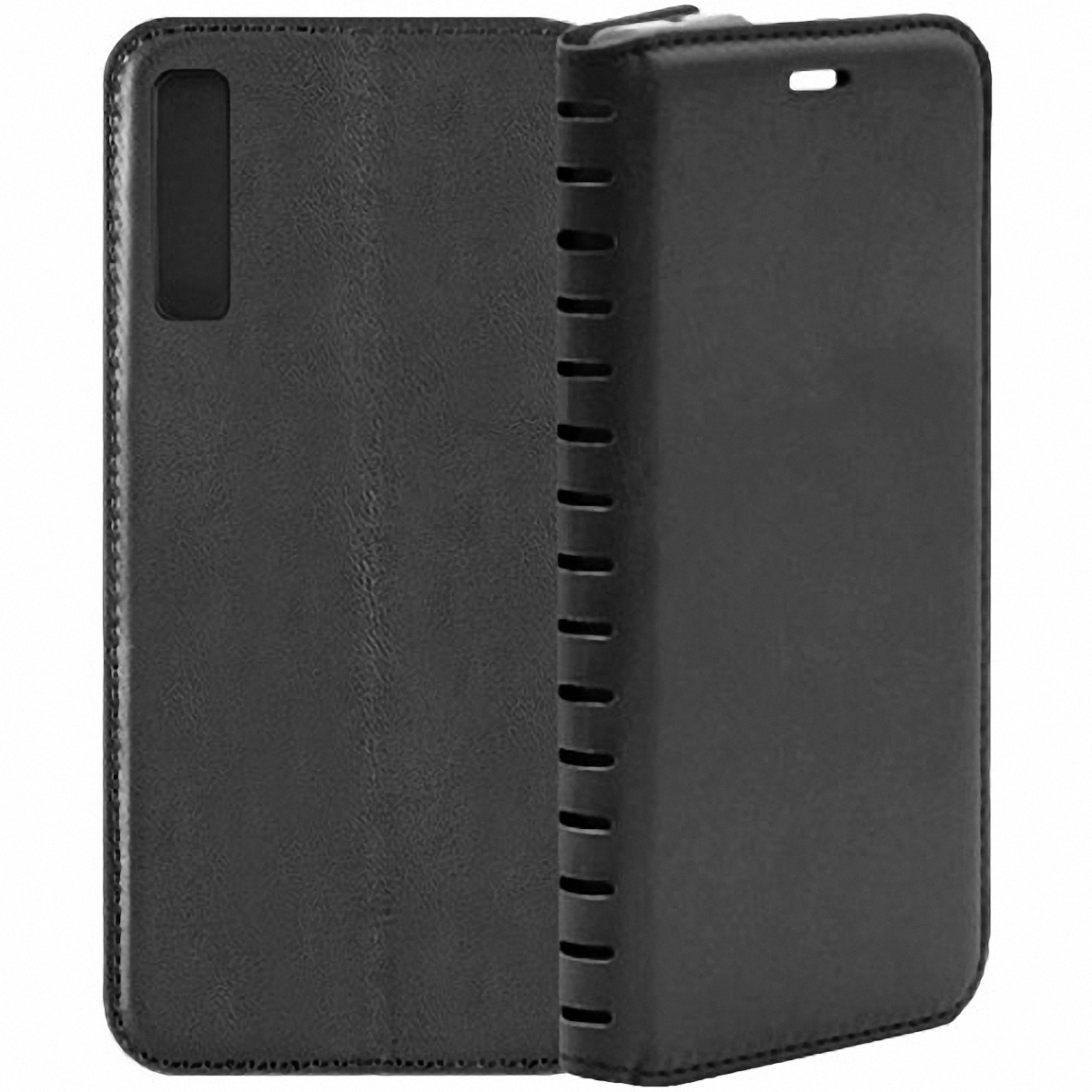 Черный чехол-книжка Book Case для Samsung Galaxy A7 (2018) A750 с магнитной обложкой и перфорацией в месте сгиба. Мягкая силиконовая TPU вставка в цвет кейса для надежной фиксации смартфона. Складывается в подставку для комфортного просмотра видео.