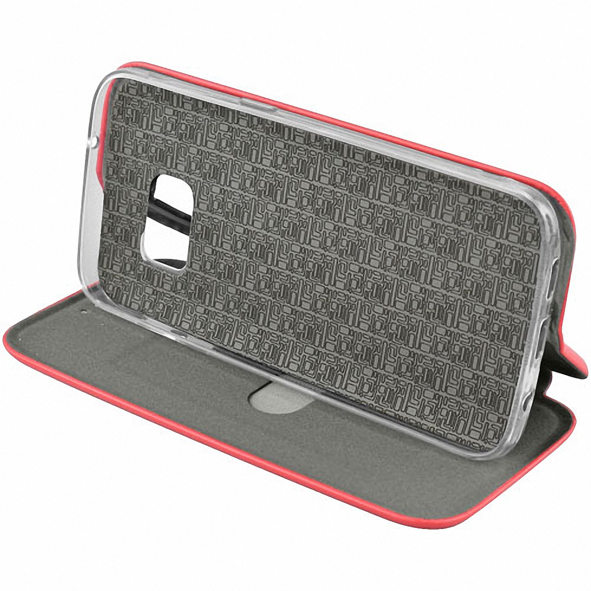 Чехол-книжка Fashion Case красного цвета для смартфона Samsung Galaxy S7 edge G935 с твердой магнитной 3D обложкой и силиконовой прозрачной вставкой внутри легко трансформируется в удобную подставку, имеет отделение для карт.