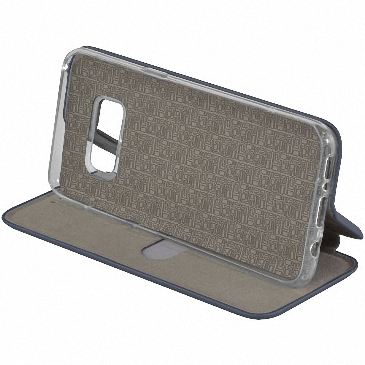 Чехол-книжка Fashion Case темно-синего цвета для смартфона Samsung Galaxy S8+ G955 с твердой магнитной 3D обложкой и силиконовой прозрачной вставкой внутри легко трансформируется в удобную подставку, имеет отделение для карт.